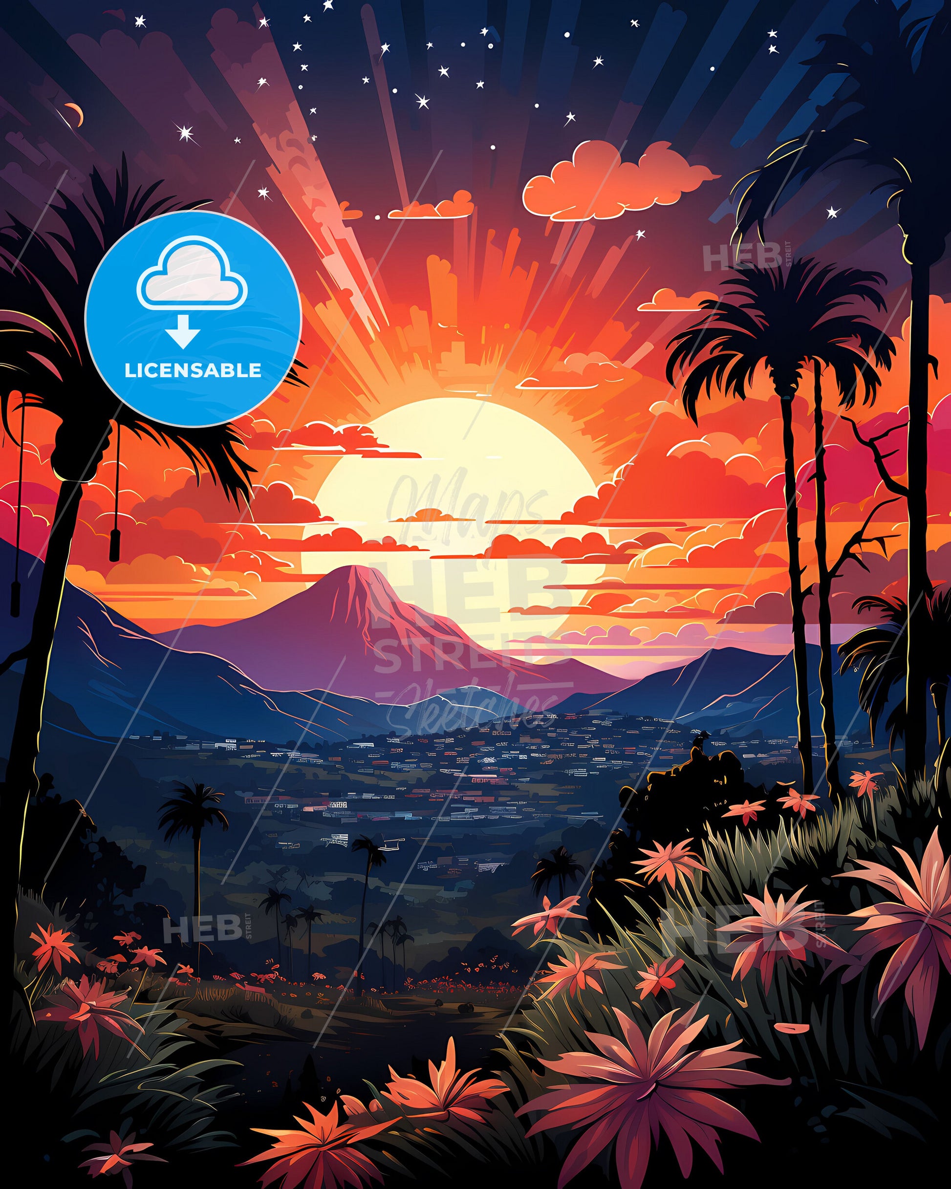 Floridablanca Colombiana Valley Sunset Skyline with Palm Trees and Mountains Painting