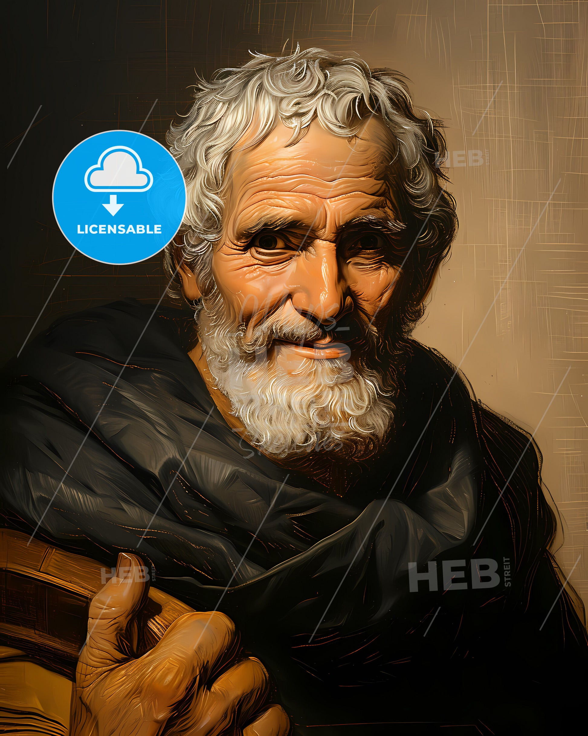 Portrait of Francisco de Vitoria, 1483 - 1546, Scholastic Philosopher, Early proponent of international law, known for his contributions to just war theory. smiling. Vintage art illustration on bright beige paper background, sweeping overdrawn lines, subtile colored artwork, that captures the playful spirit and vivid imagination of modern art.