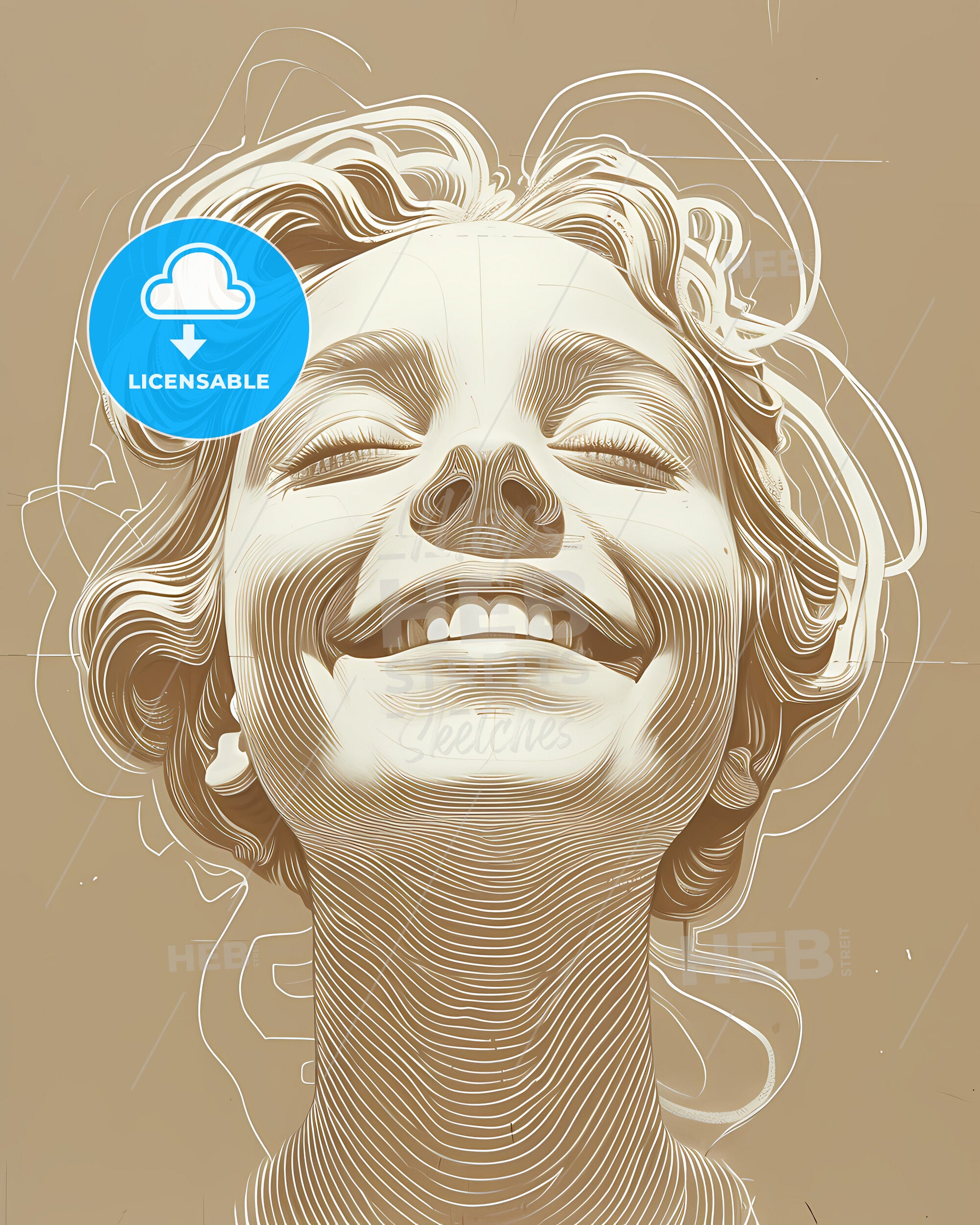 Portrait of Gian Lorenzo Bernini, 1598 - 1680, Sculptor and Architect, Leading sculptor of the Baroque period, known for his dynamic and emotional sculptures. - smiling. Vintage art illustration on bright beige paper background, sweeping overdrawn lines, subtile colored artwork, that captures the playful spirit and vivid imagination of modern art.