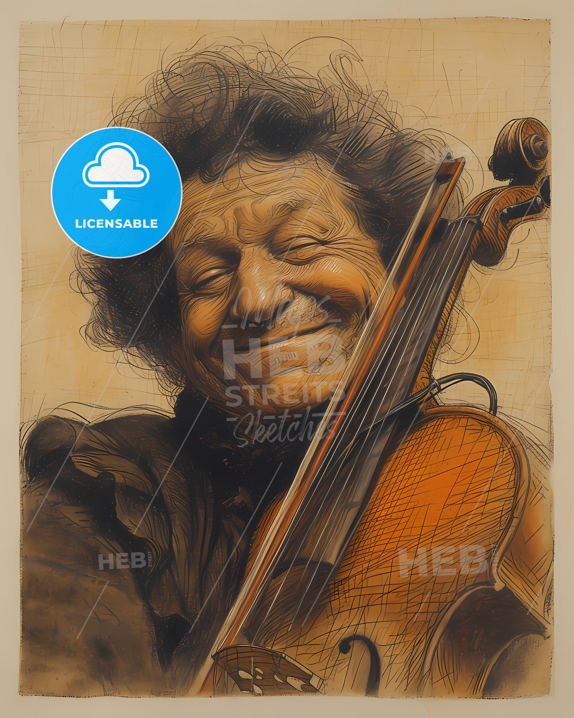Portrait of Giuseppe Torelli, 1658 - 1709, Composer and Violinist - smiling and winking. Vintage art illustration on bright beige paper background, sweeping overdrawn lines, subtile colored artwork, that captures the playful spirit and vivid imagination of modern art.
