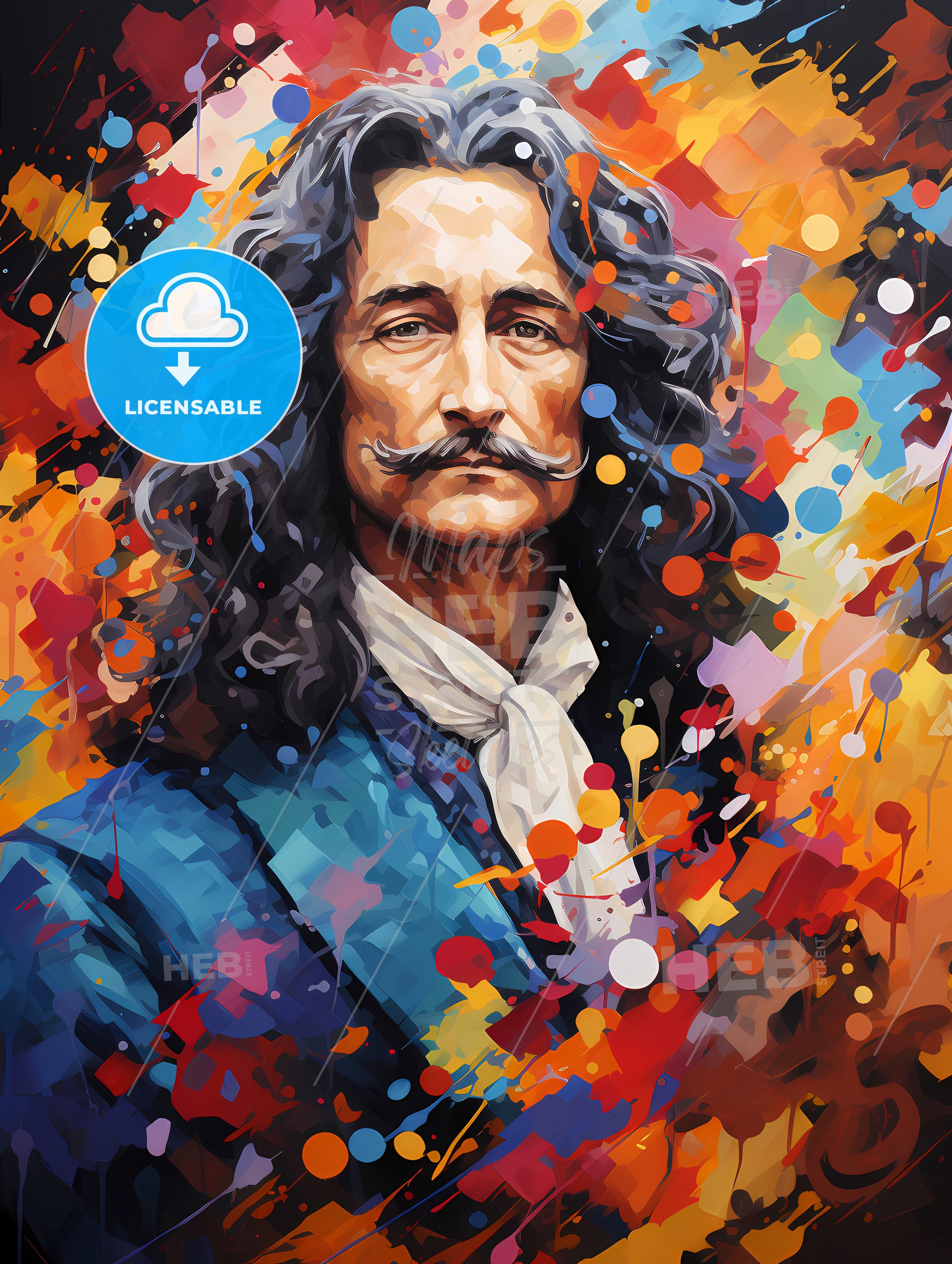 Gottfried Wilhelm Leibniz - A Painting Of A Man With Long Curly Hair And A Mustache