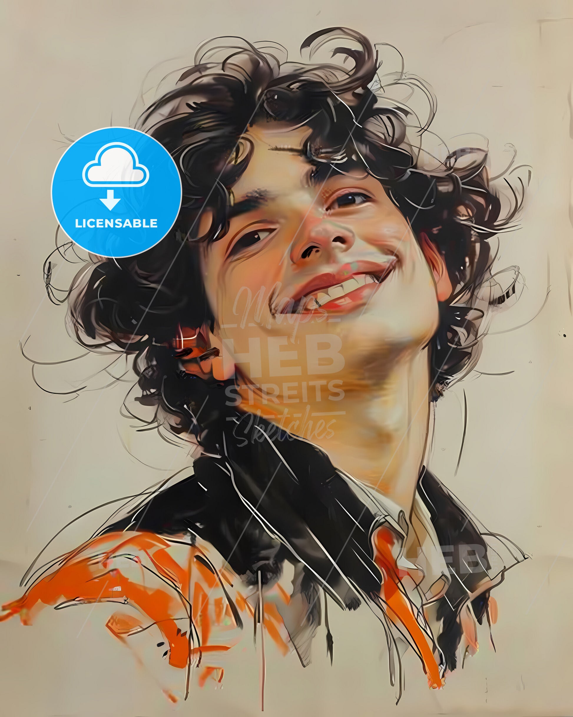 Portrait of Guido Reni, 1575 - 1642, Painter - smiling. Vintage art illustration on bright beige paper background, sweeping overdrawn lines, subtile colored artwork, that captures the playful spirit and vivid imagination of modern art.