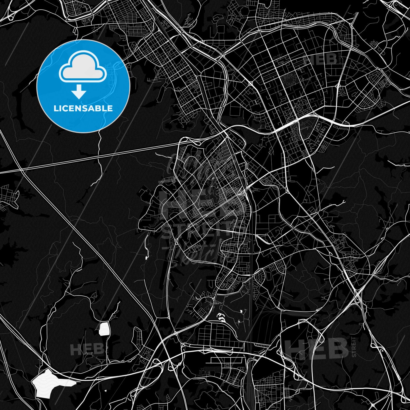 Black and white vector map of Gunpo, Gyeonggi, South Korea with fine structures and patterns for download. This printable map of Gunpo with major and minor roads has been carefully designed for all personal and professional needs. The pure PDF vector version of this map is fully scalable. Depending on our license, you can use this map for websites, marketing background and wall art.
