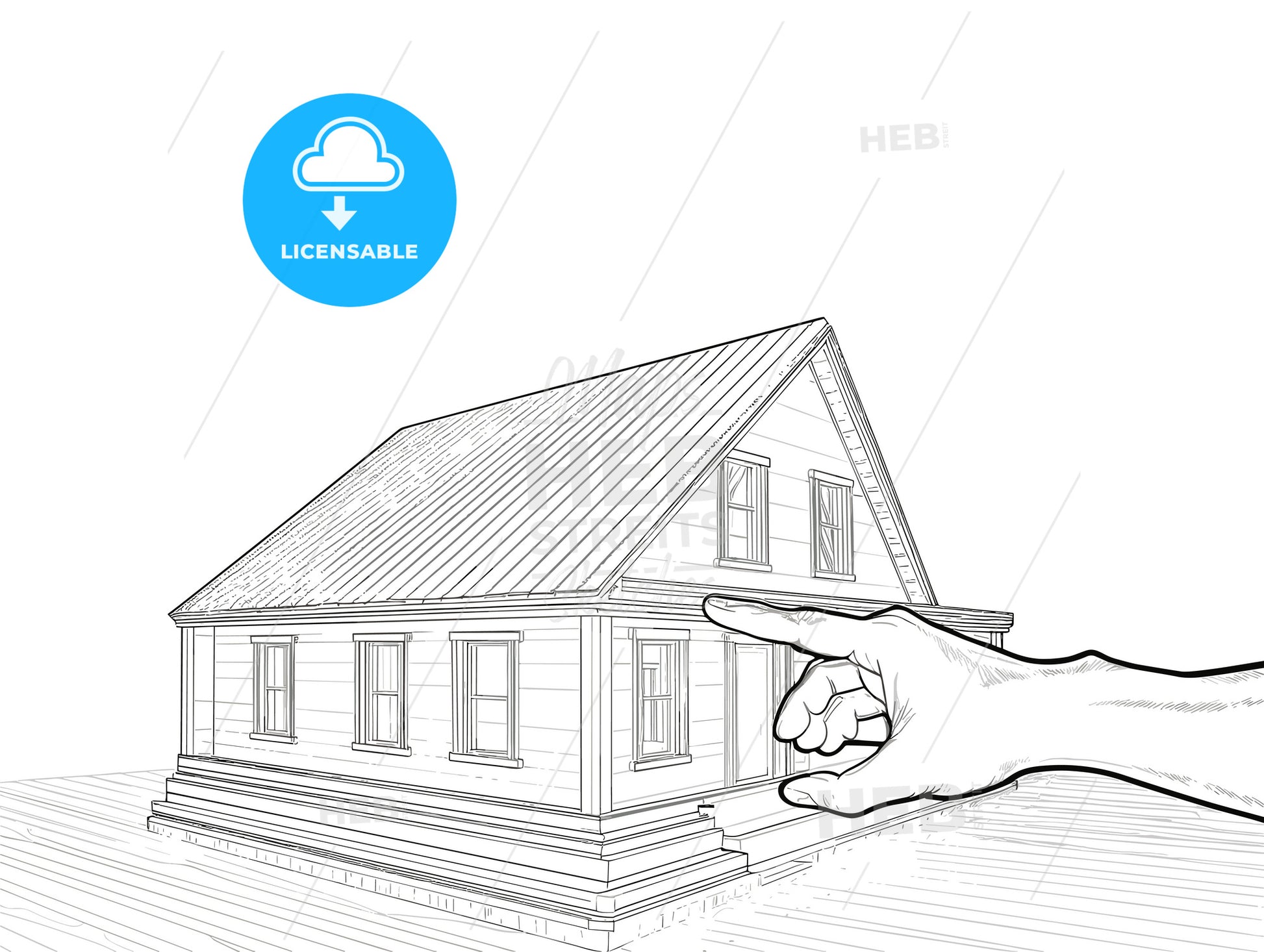 Hands Framing Real Estate Sign And New House - a hand pointing at a house