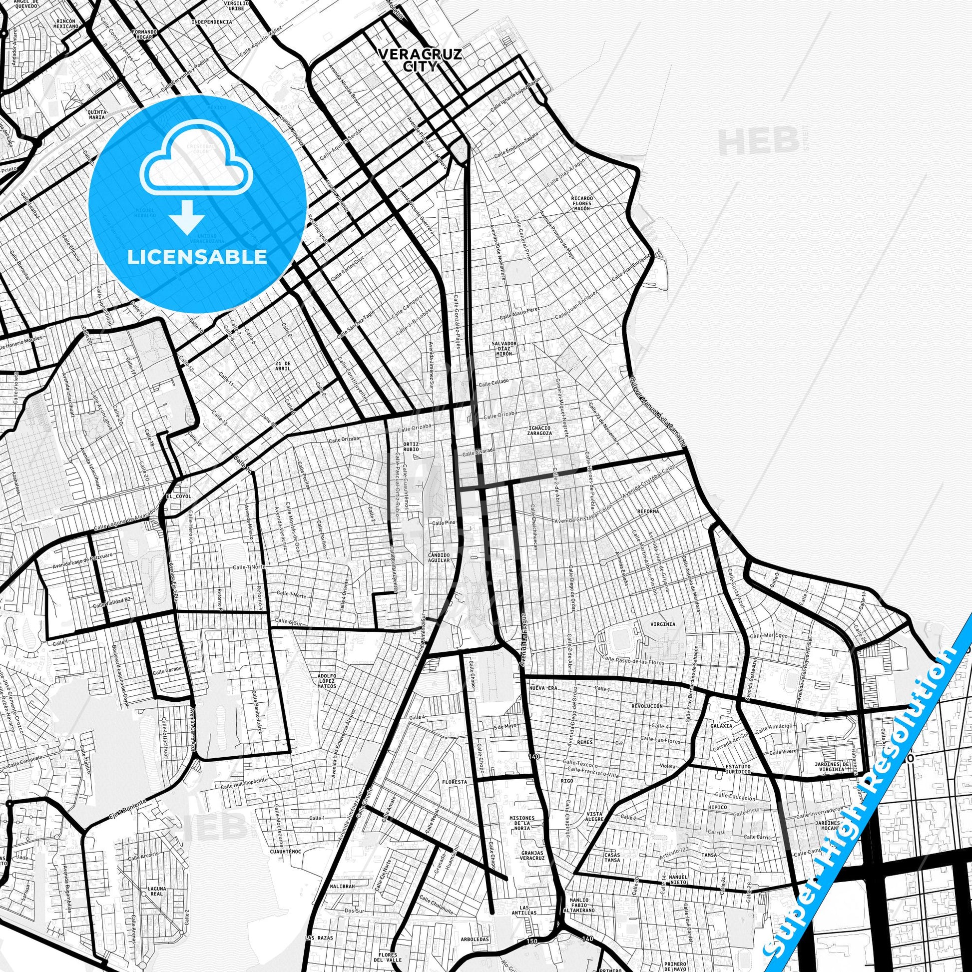 Heroica Veracruz, Veracruz, Mexico in high-resolution, minimalist map designed for printed use. This detailed black and white map accurately highlights the street network and urban layout, making it an ideal ready-to-use map for your business.