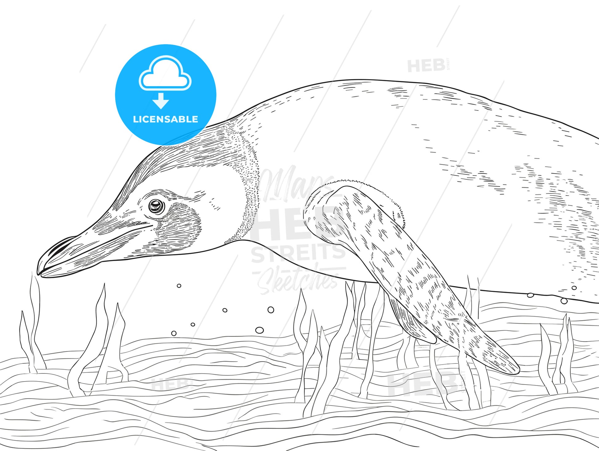 Humboldt Penguin Underwater With A Fish. - a coloring page of a penguin
