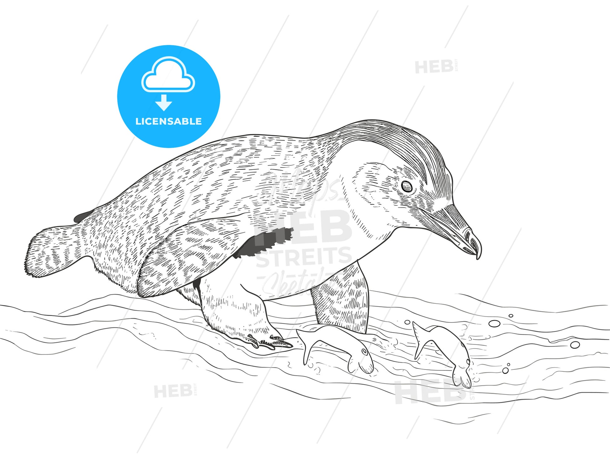 Humboldt Penguin Underwater With A Fish. - a penguin walking in the water