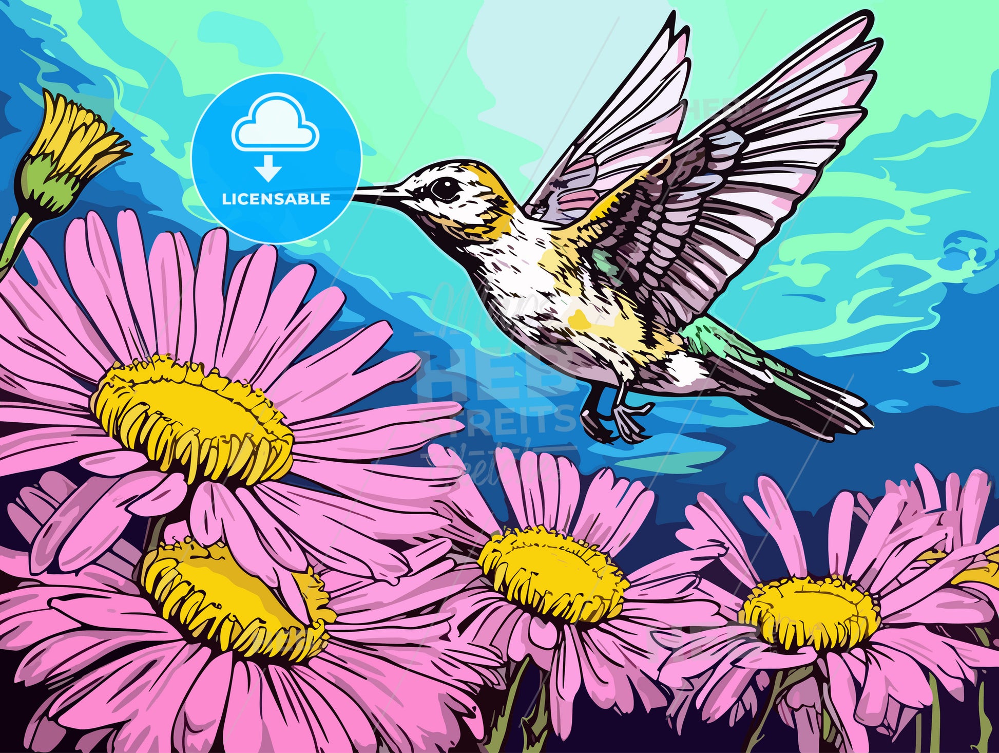 Hummingbird Flying Taken The Nectar From The Flower - a hummingbird flying over pink flowers
