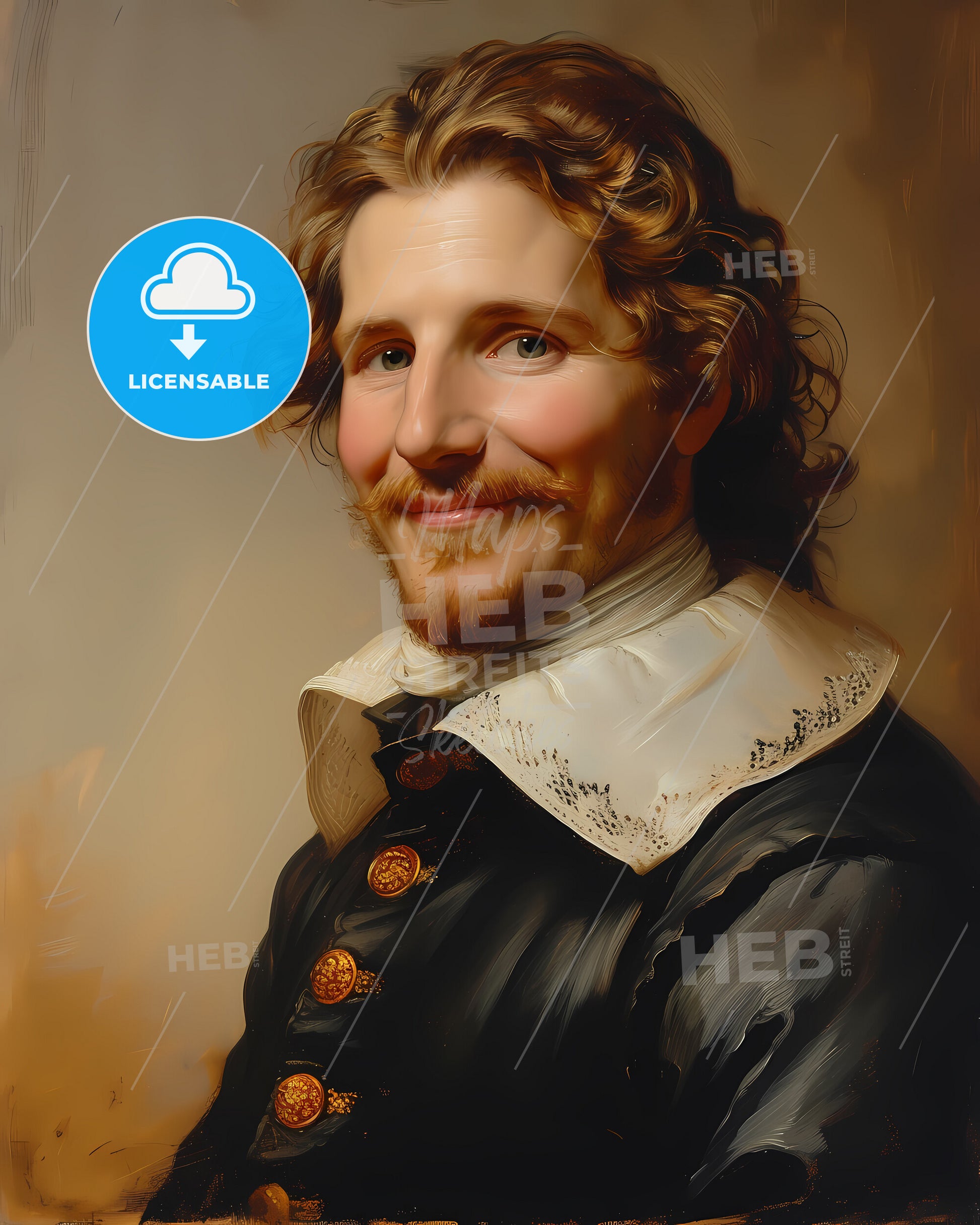 Portrait of Jean-Baptiste Lully, 1632 - 1687, Composer, Italian-born French composer, a key figure in the development of French opera. smiling. Vintage art illustration on bright beige paper background, sweeping overdrawn lines, subtile colored artwork, that captures the playful spirit and vivid imagination of modern art.