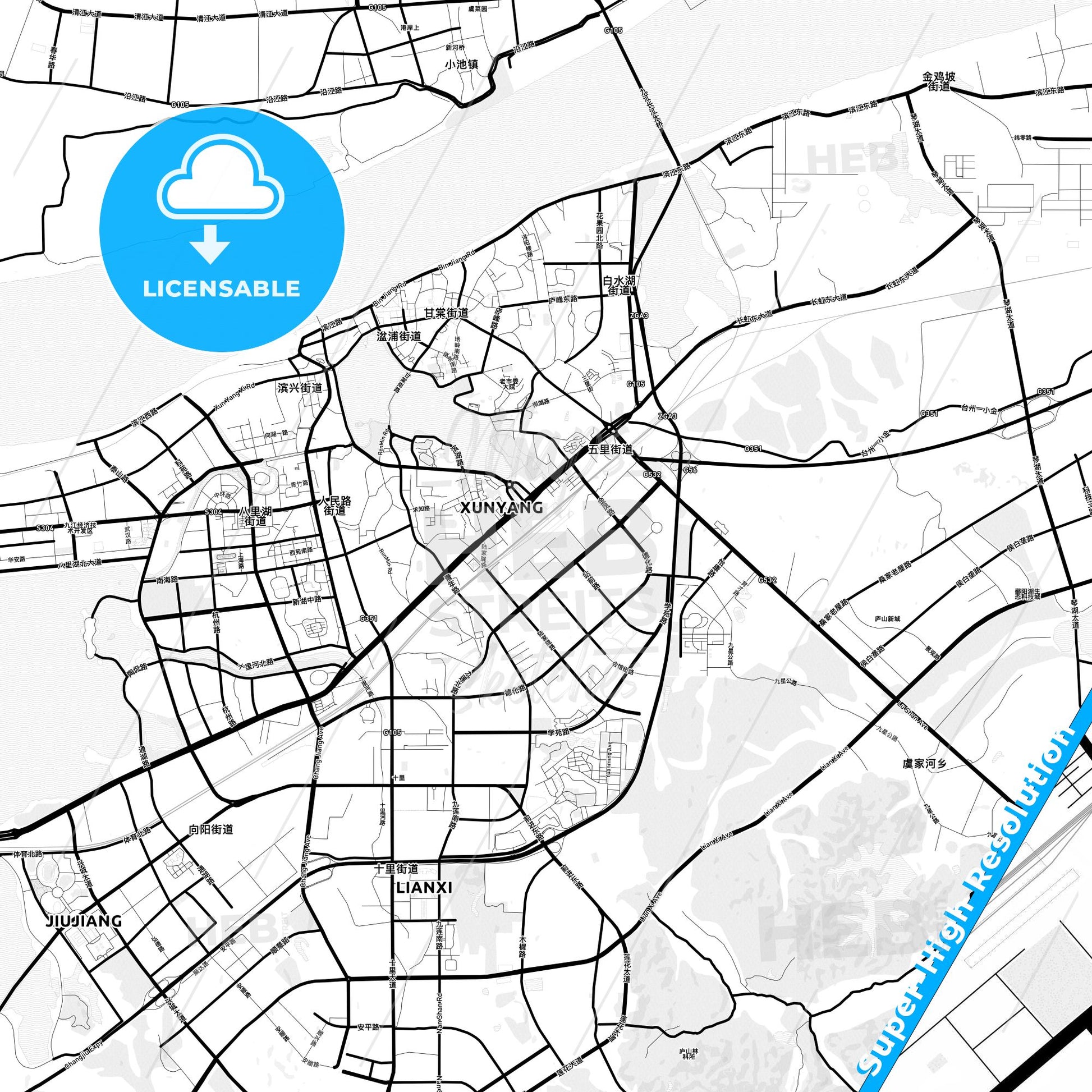 Jiujiang, Jiangxi, China in high-resolution, minimalist map designed for printed use. This detailed black and white map accurately highlights the street network and urban layout, making it an ideal ready-to-use map for your business.