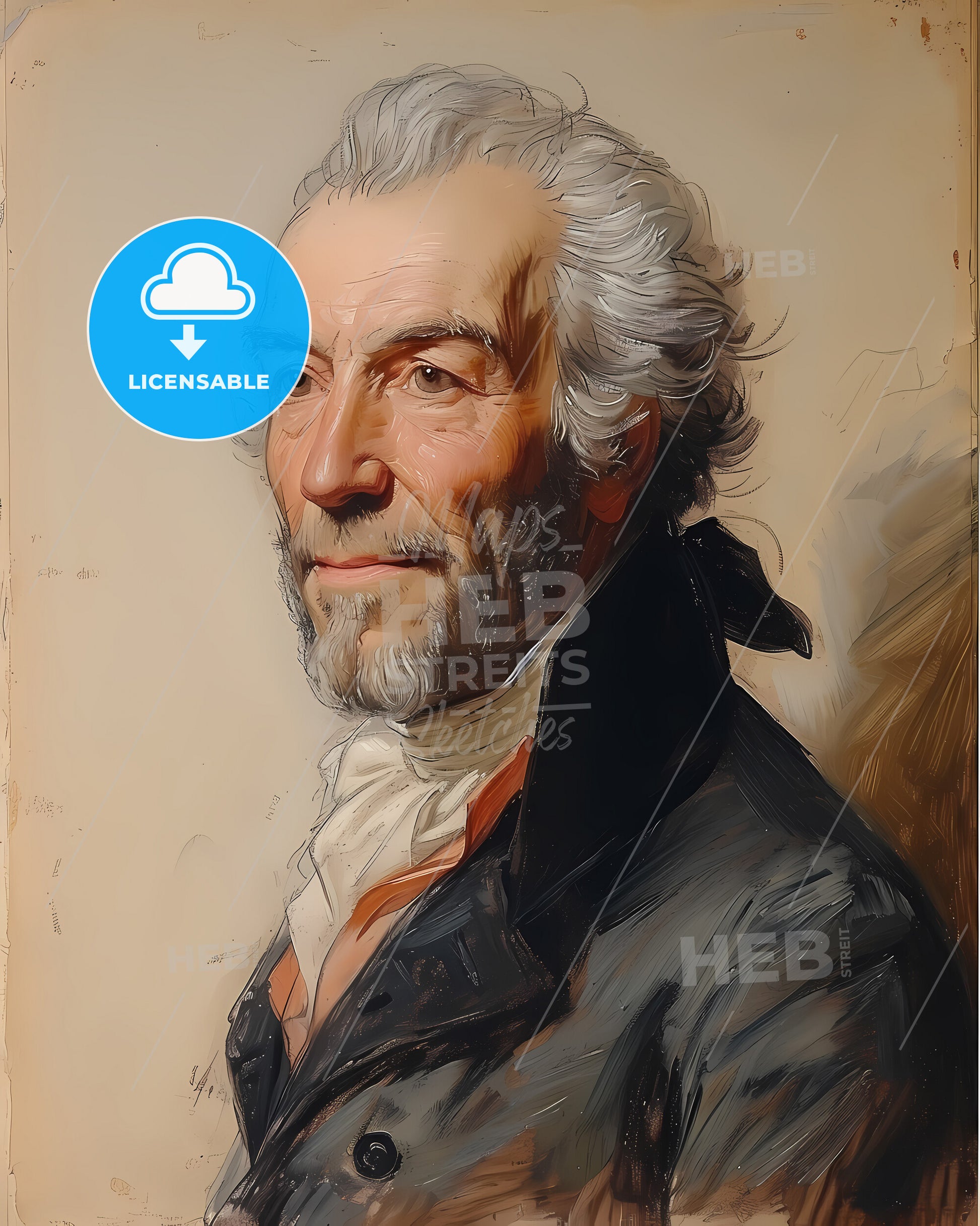 Portrait of Johann Stamitz, 1717 - 1757, Composer, Bohemian composer and violinist, a key figure in the development of the symphony. smiling. Vintage art illustration on bright beige paper background, sweeping overdrawn lines, subtile colored artwork, that captures the playful spirit and vivid imagination of modern art.