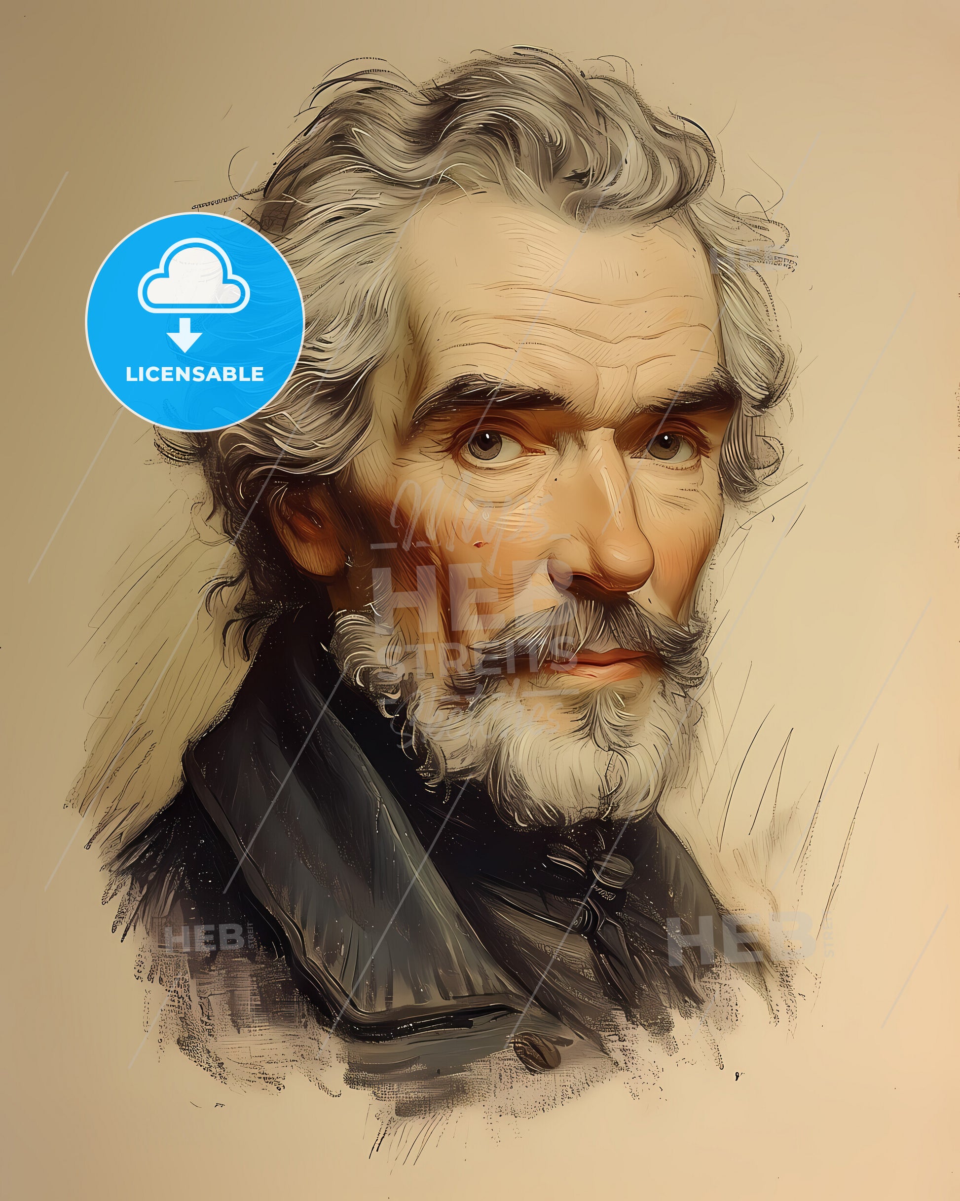 Portrait of John Hunter, 1728 - 1793, Surgeon and Anatomist, Scottish surgeon and anatomist, considered one of the founders of modern surgery. smiling. Vintage art illustration on bright beige paper background, sweeping overdrawn lines, subtile colored artwork, that captures the playful spirit and vivid imagination of modern art.