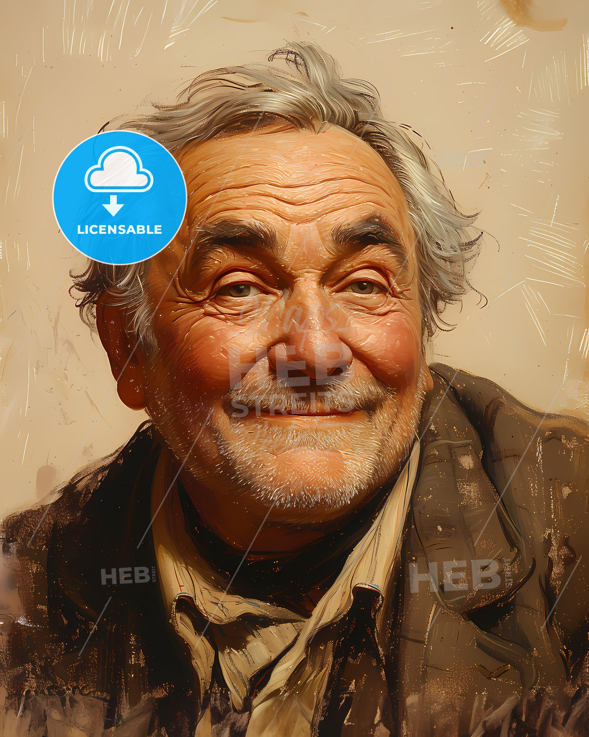 Portrait of John Kay, 1704 - 1780, Inventor, English engineer and inventor, invented the flying shuttle, a key development in the textile industry. smiling. Vintage art illustration on bright beige paper background, sweeping overdrawn lines, subtile colored artwork, that captures the playful spirit and vivid imagination of modern art.