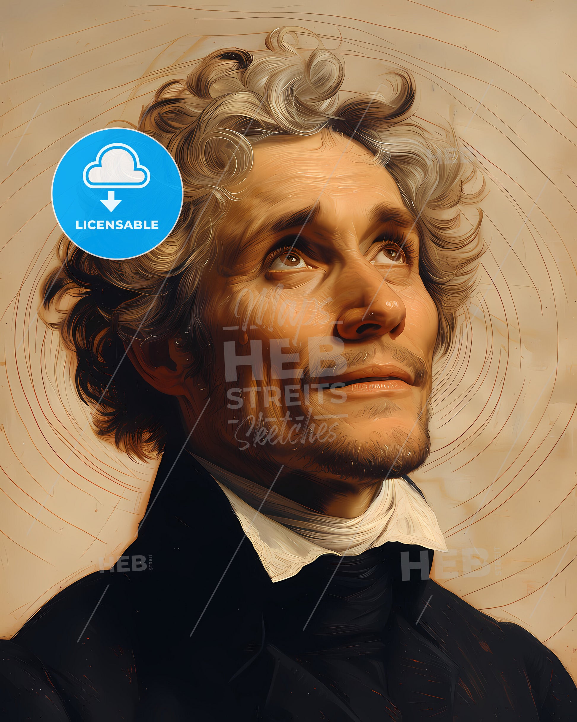 Portrait of John Michell, 1724 - 1793, Geologist, English natural philosopher and geologist, proposed the concept of black holes. smiling. Vintage art illustration on bright beige paper background, sweeping overdrawn lines, subtile colored artwork, that captures the playful spirit and vivid imagination of modern art.