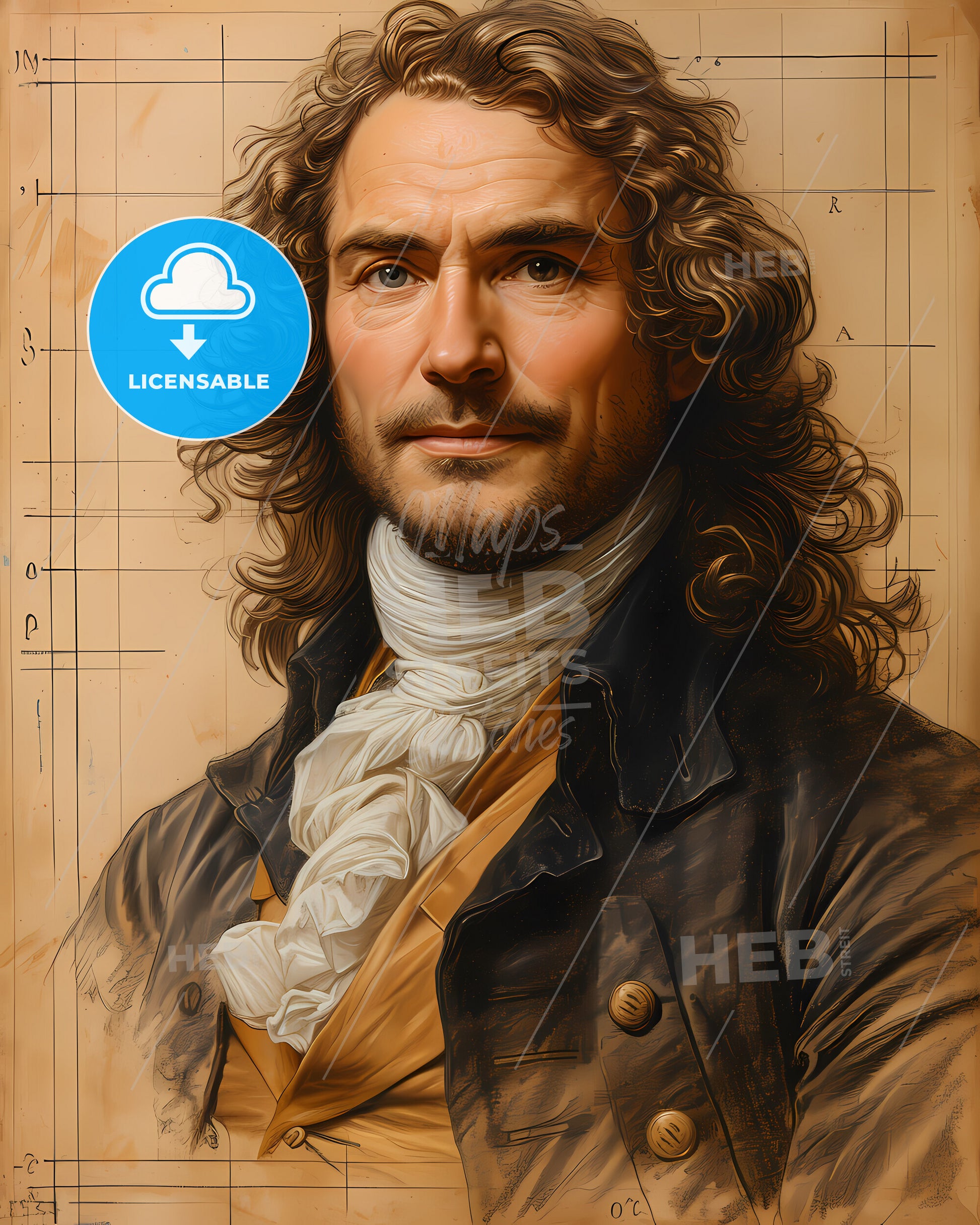 Portrait of John Michell, 1724 - 1793, Geologist, English natural philosopher and geologist, proposed the concept of black holes. smiling. Vintage art illustration on bright beige paper background, sweeping overdrawn lines, subtile colored artwork, that captures the playful spirit and vivid imagination of modern art.