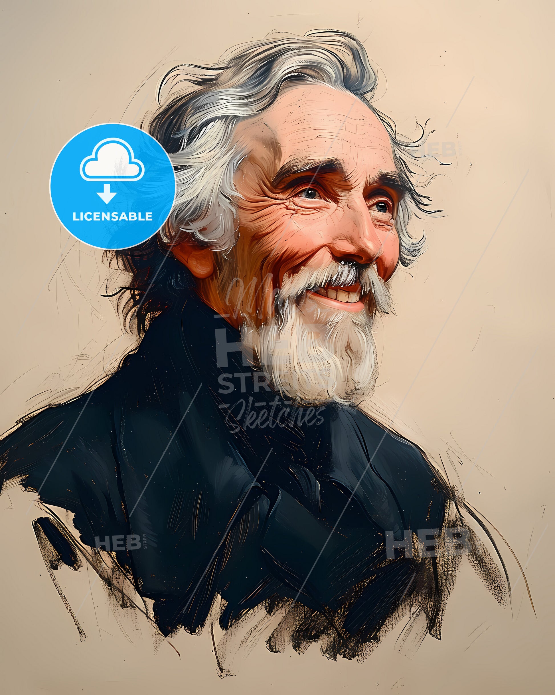 Portrait of John Wesley, 1703 - 1791, Theologian and Natural Philosopher, English cleric and founder of Methodism, also a natural philosopher with an interest in science. smiling. Vintage art illustration on bright beige paper background, sweeping overdrawn lines, subtile colored artwork, that captures the playful spirit and vivid imagination of modern art.