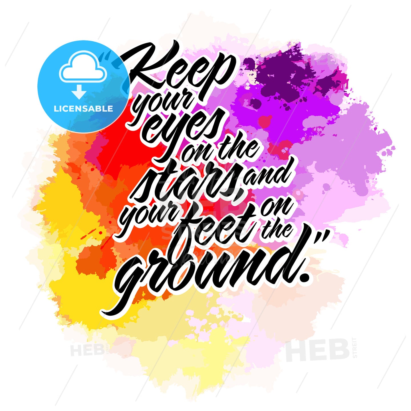 Keep Your Eyes On The Stars, And Your Feet On The Ground. Lettering Design Vector art for print design.