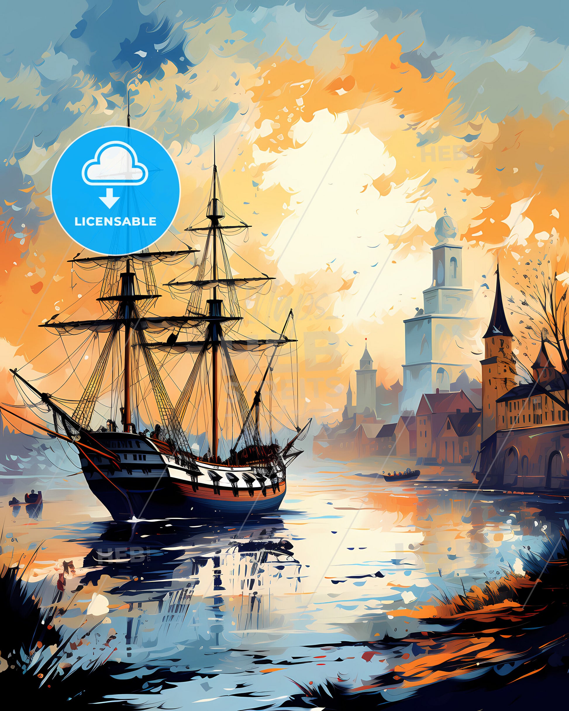Kingston Upon Hull, Yorkshire and the Humber, a painting of a ship in a river