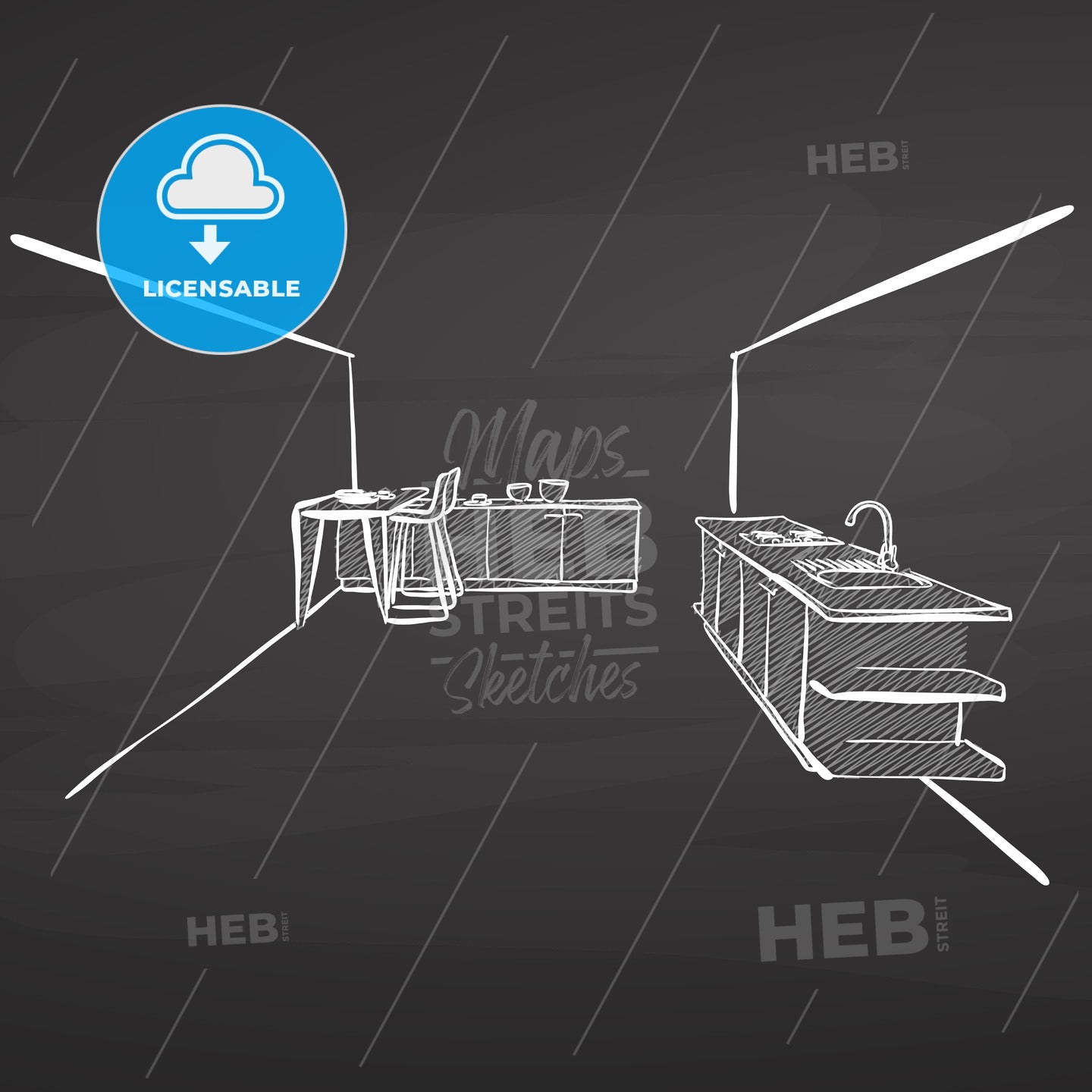 kitchen drawing on blackboard. hand-drawn vector sketch. business concept design.