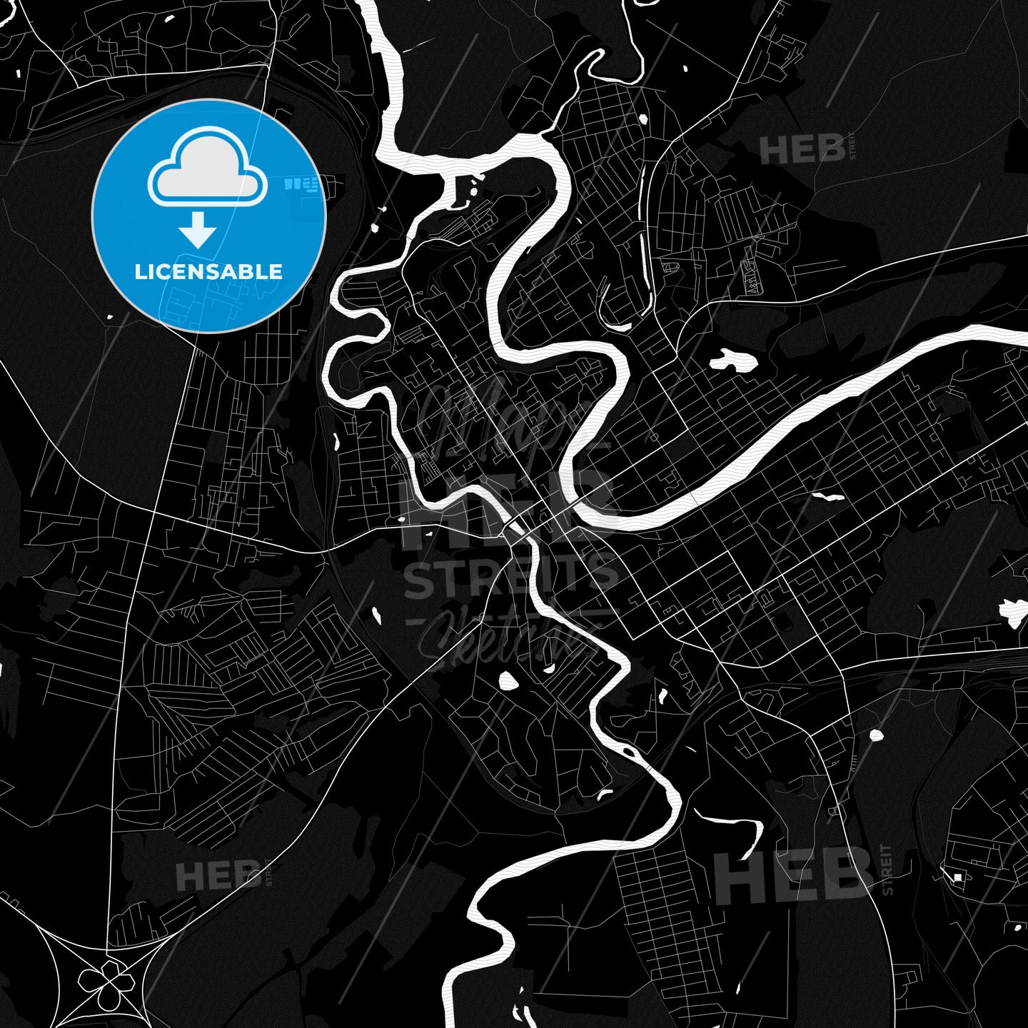 Black and white vector map of Kungur, Perm Krai, Russia with fine structures and patterns for download. This printable map of Kungur with major and minor roads has been carefully designed for all personal and professional needs. The pure PDF vector version of this map is fully scalable. Depending on our license, you can use this map for websites, marketing background and wall art.
