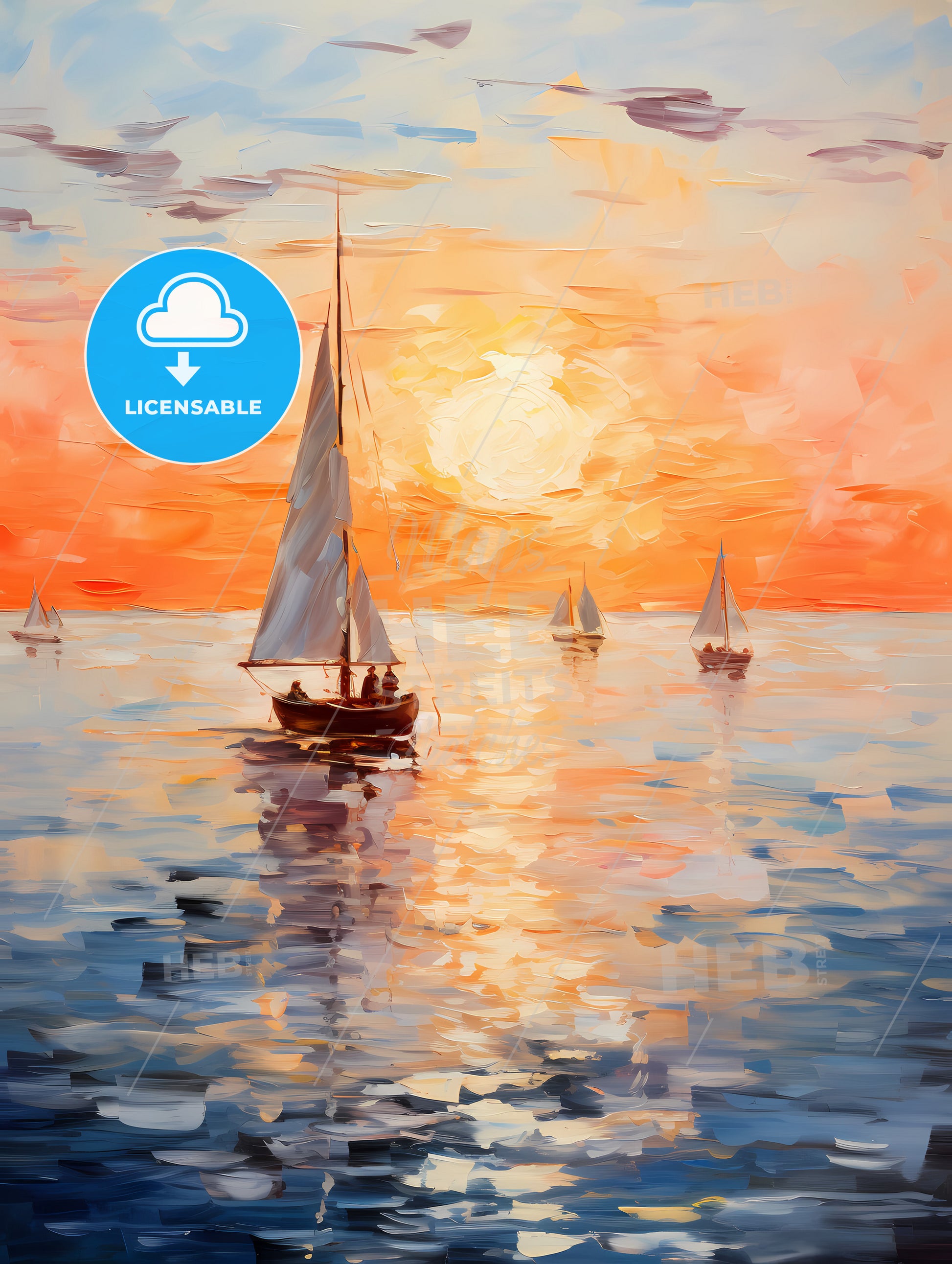 Landscape With Sailing Boats On The Sea - a painting of a sailboat in the ocean