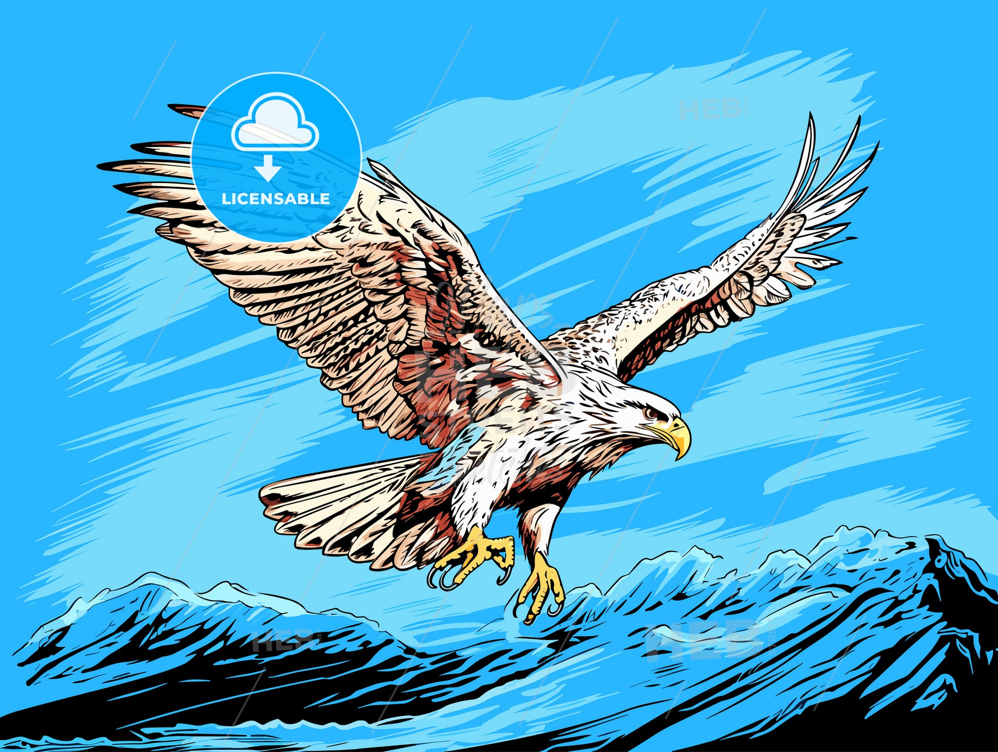 Large Ferruginous Hawk In Flight With Blue Sky - a bird flying over mountains