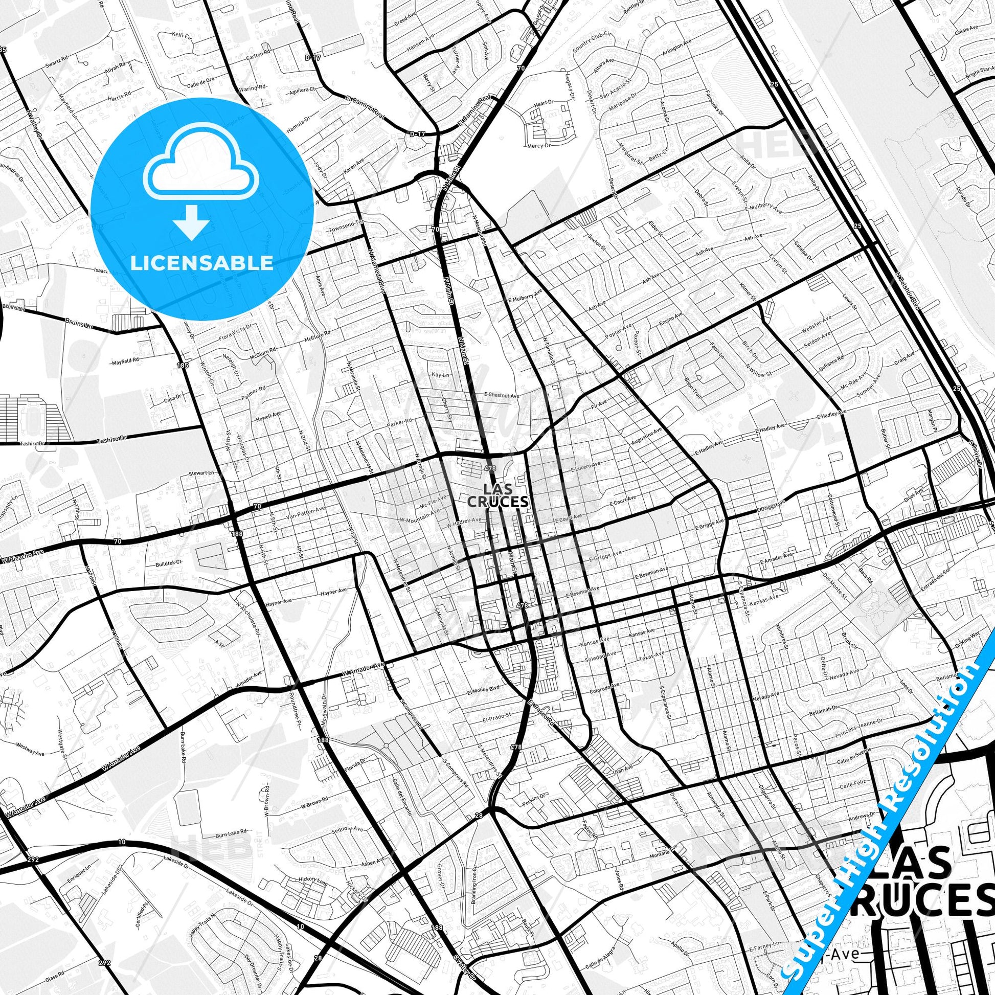 Las Cruces, New Mexico, New Mexico in high-resolution, minimalist map designed for printed use. This detailed black and white map accurately highlights the street network and urban layout, making it an ideal ready-to-use map for your business.