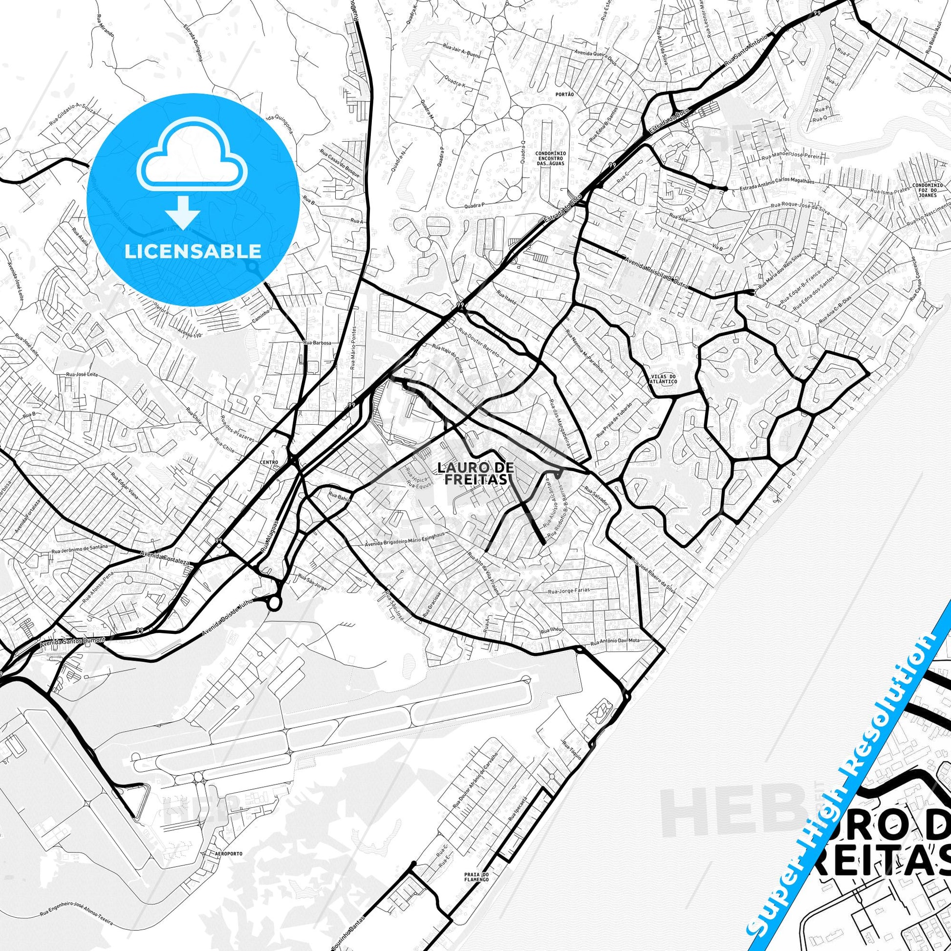 Lauro de Freitas, Brazil Light Map with Street Names, City Names, and Districts