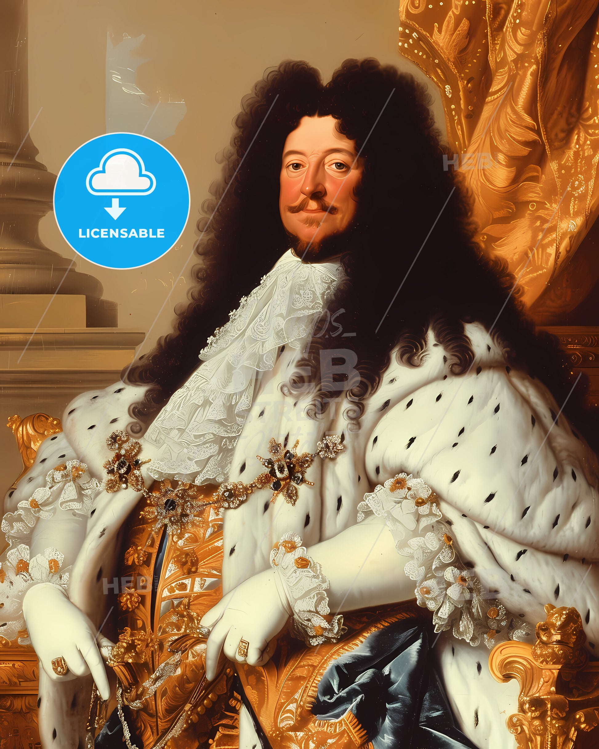 King of France, Louis XIV, 1638 - 1715, a painting of a man in a white robe