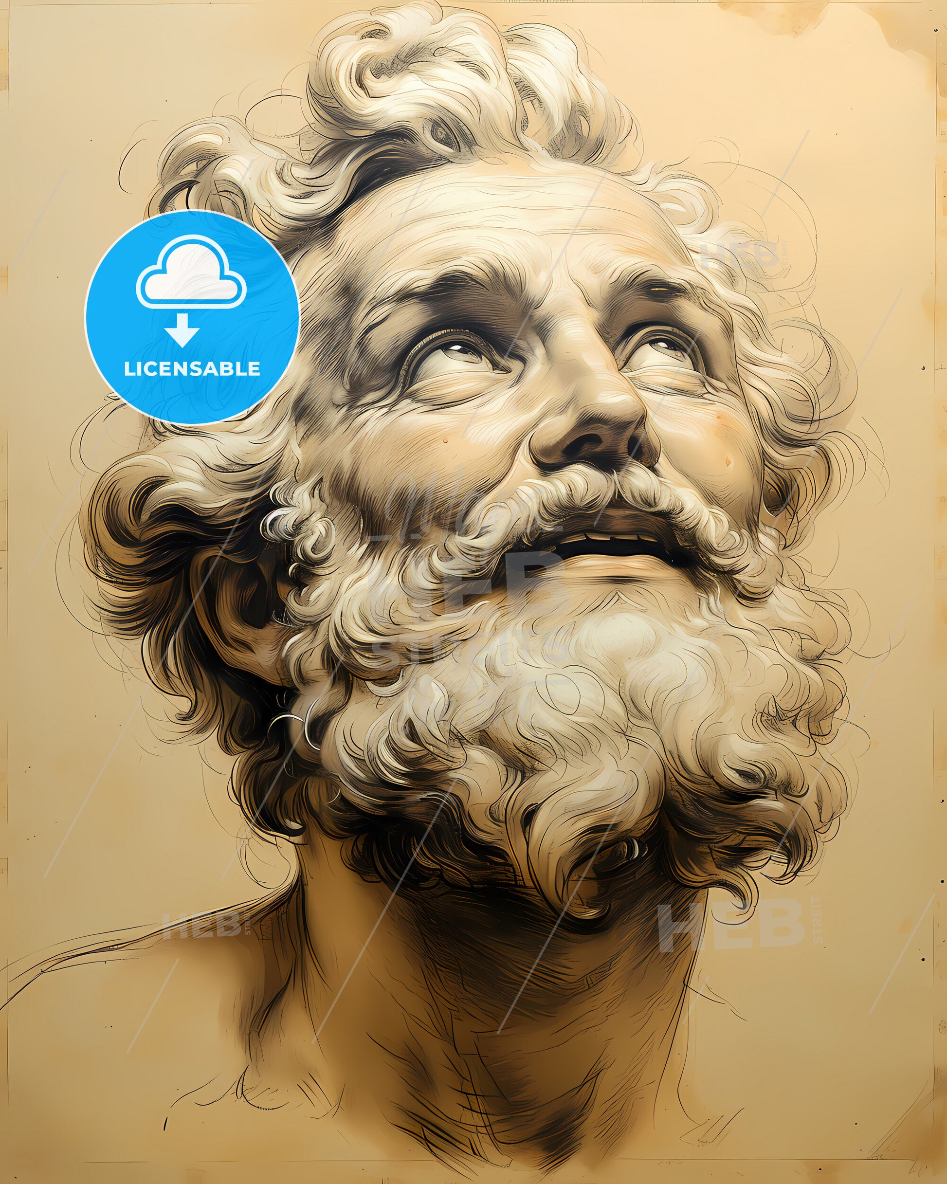 Portrait of Lycurgus, c. 9th century BCE - c. 7th century BCE, Legendary Lawgiver of Sparta, According to tradition, Lycurgus established the Spartan constitution and military system. smiling. Vintage art illustration on bright beige paper background, sweeping overdrawn lines, subtile colored artwork, that captures the playful spirit and vivid imagination of modern art.