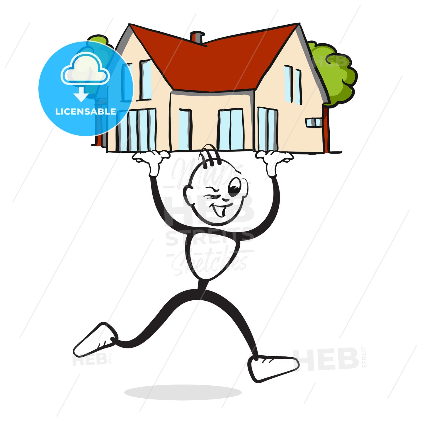 Man presents house Stickman Emotion, Drawing with nice emotional face