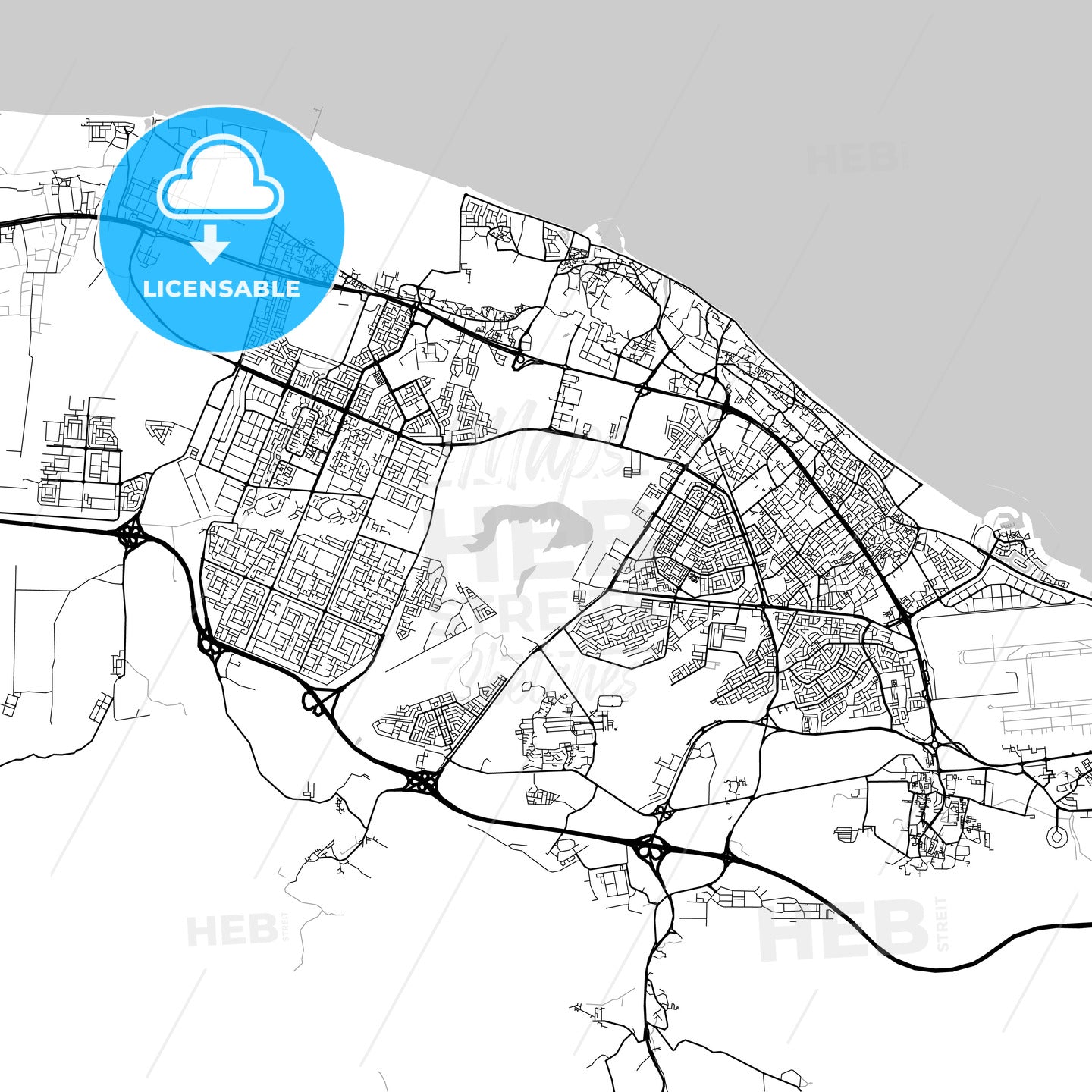 Seeb, Muscat, Oman, light map. Many details and fine gradations for web and print productions. This map of Seeb, Muscat contains typical landmarks for traffic with space for additional information and easy access to color changes.