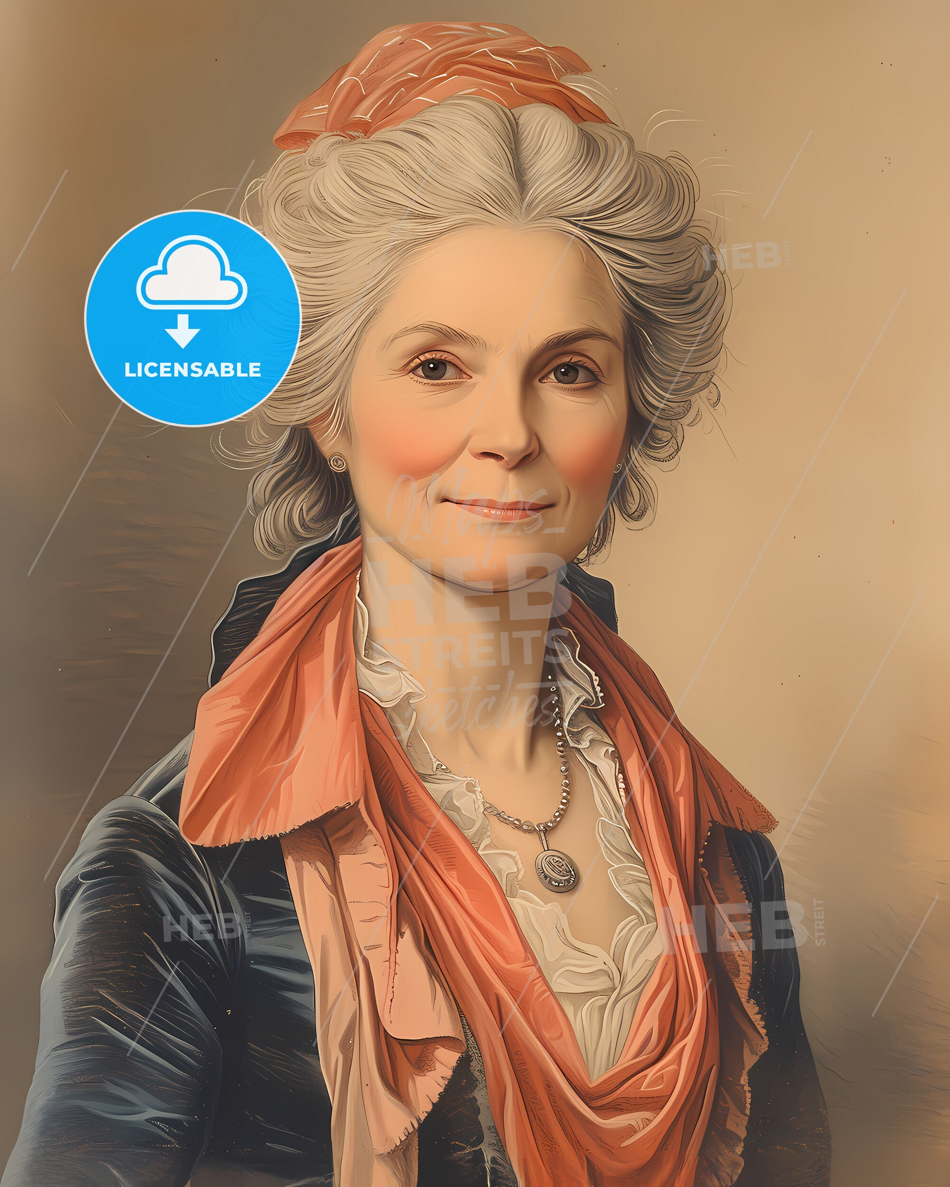 Portrait of Maria Gaetana Agnesi, 1718 - 1799, Mathematician, Italian mathematician and philosopher, wrote the first book discussing both differential and integral calculus. smiling. Vintage art illustration on bright beige paper background, sweeping overdrawn lines, subtile colored artwork, that captures the playful spirit and vivid imagination of modern art.
