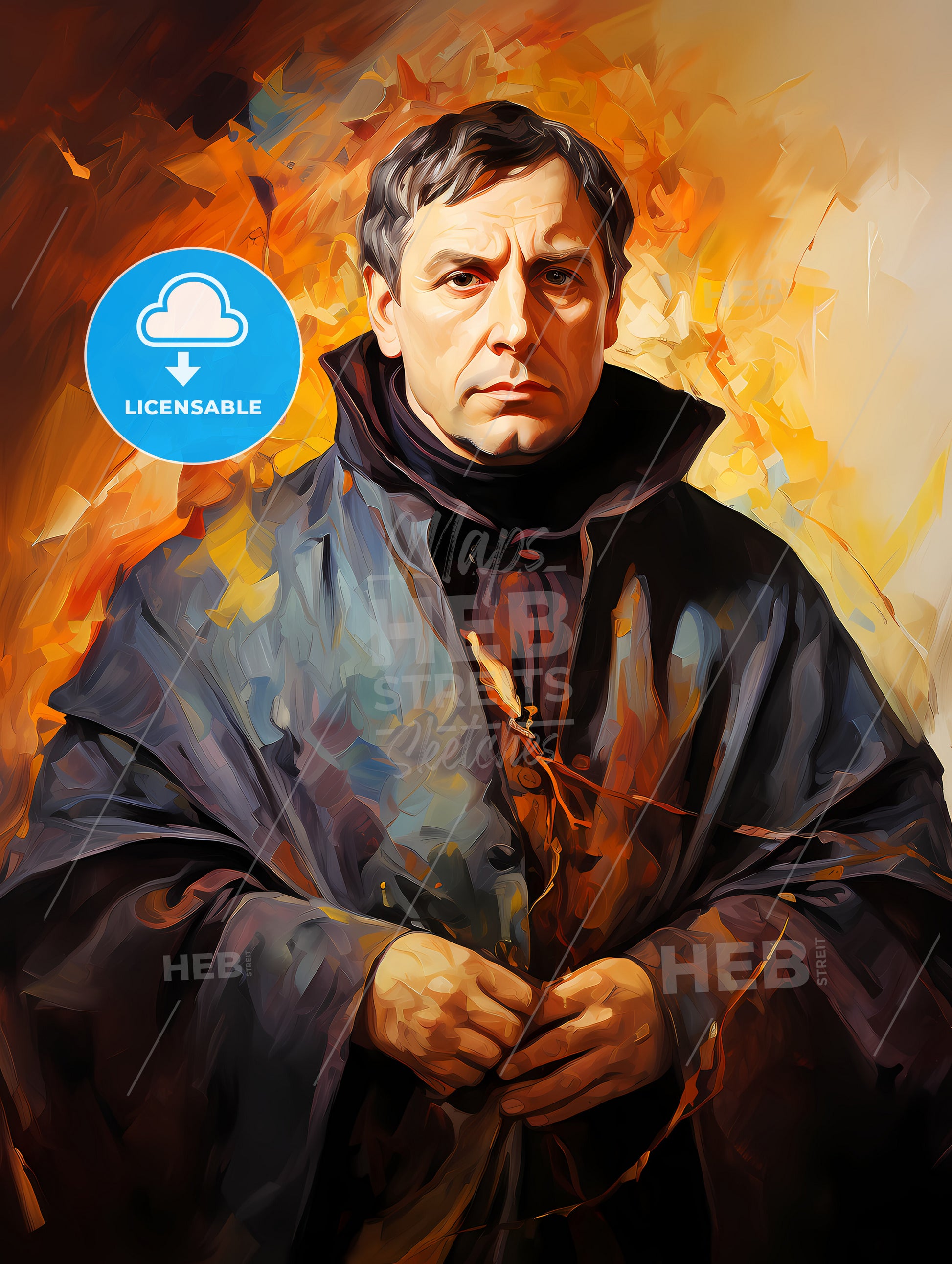 Martin Luther German Theologian - a painting of a man in a robe - Martin Luther poster, German theologian poster, colorful acrylic painting, hand-painted strokes, line-art, unframed poster, framed art print, high quality art print, gift, home decor, wall art, Martin Luther gift, Martin Luther home decor, Luther art, Luther poster, Christian gift, religious decor, German theologian, colorful poster, acrylic strokes, line-art painting, unframed art, framed poster, high quality print, interior decoration, home interior, art gift, religious gift, Christian home decor, Martin Luther artwork, Luther painting, colorful painting, acrylic art, line-art decor, framed print, high quality poster, religious painting, Christian decor, German theologian decor, colorful print, hand-painted art, line-art gift.