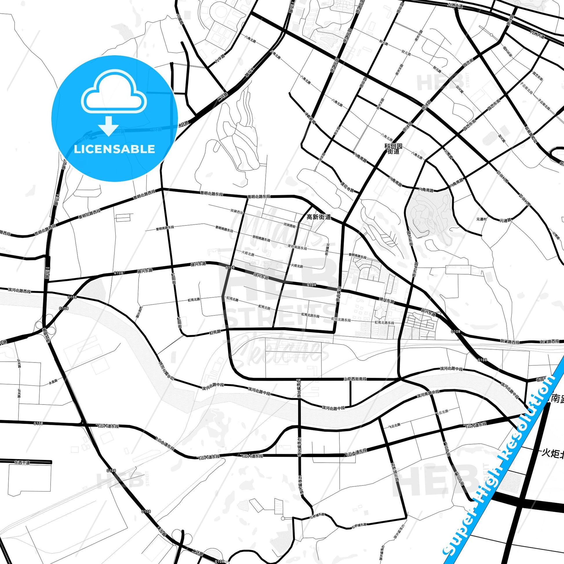 Mianyang, Sichuan, China in high-resolution, minimalist map designed for printed use. This detailed black and white map accurately highlights the street network and urban layout, making it an ideal ready-to-use map for your business.
