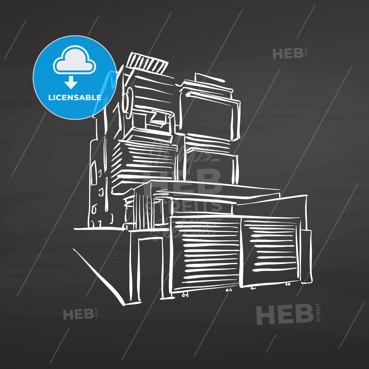 modern office house drawing on chalkboard. hand-drawn vector sketch. business concept design.