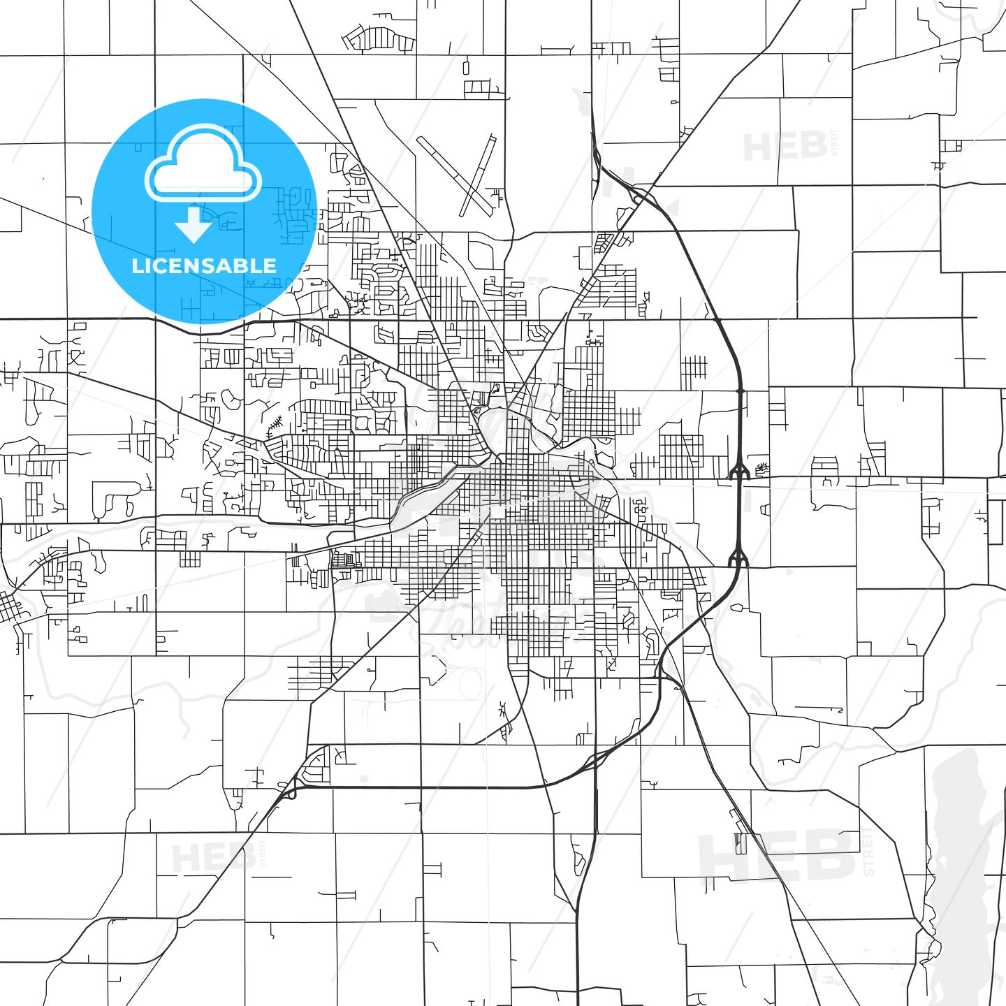 Muncie downtown and surroundings Map in light shaded version with many details for high zoom levels. This map of Muncie contains typical landmarks with space for additional information and easy access to color changes.
