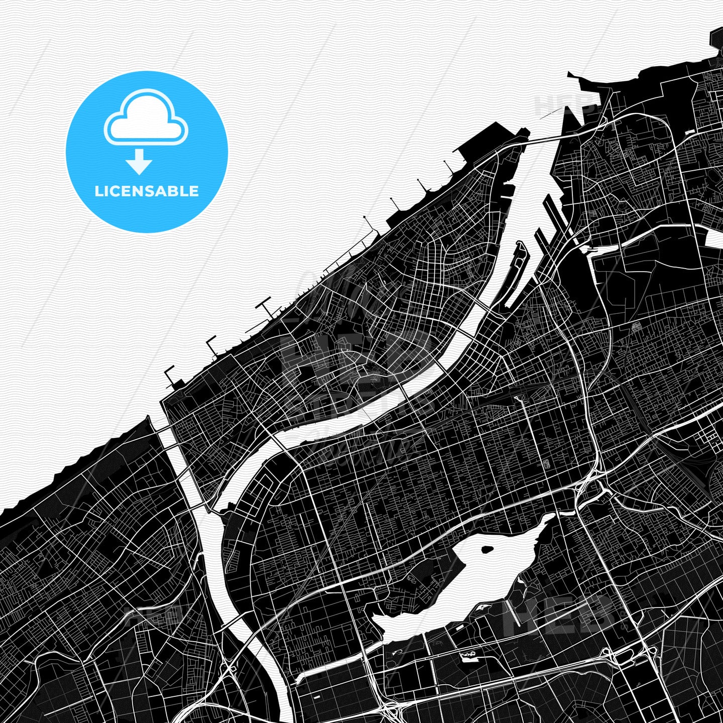 Black and white vector map of Niigata, Niigata, Japan with fine structures and patterns for download. This printable map of Niigata with major and minor roads has been carefully designed for all personal and professional needs. The pure PDF vector version of this map is fully scalable. Depending on our license, you can use this map for websites, marketing background and wall art.