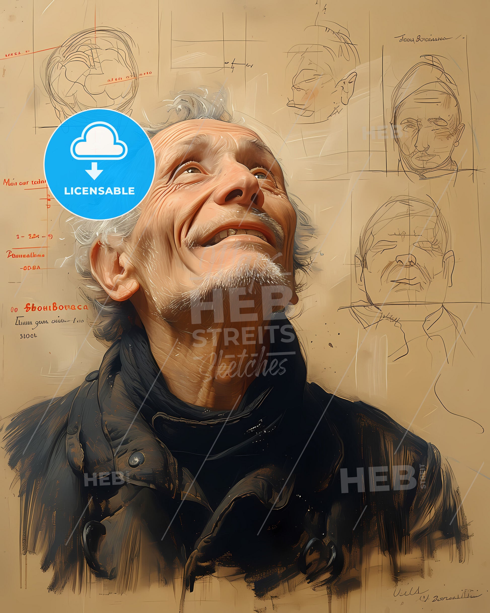 Portrait of Paul Broca, 1824 - 1880, Physician and Anthropologist, Discovered Broca's area in the brain and made significant contributions to the field of anthropology. smiling. Vintage art illustration on bright beige paper background, sweeping overdrawn lines, subtile colored artwork, that captures the playful spirit and vivid imagination of modern art.
