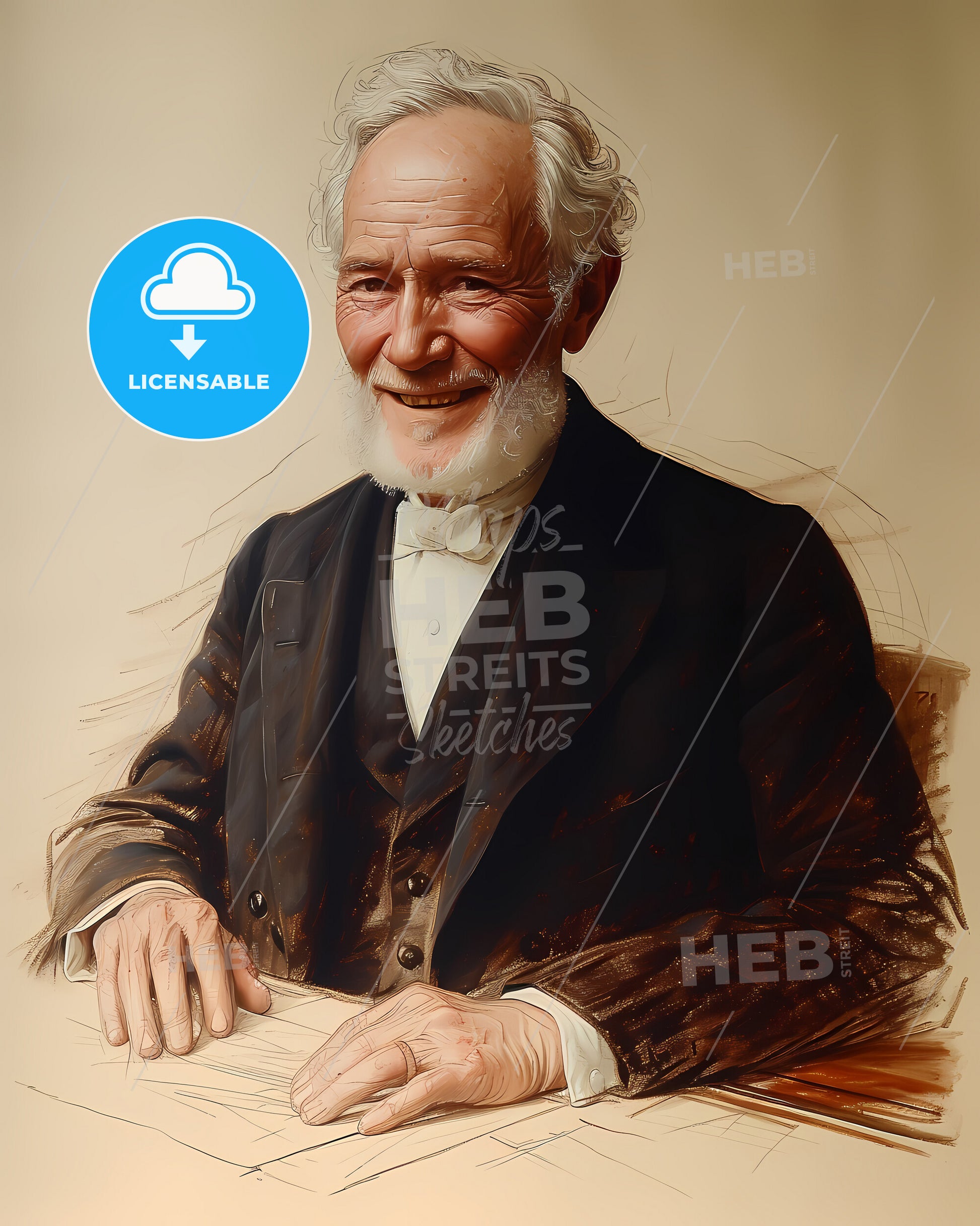Portrait of Paul Broca, 1824 - 1880, Physician and Anthropologist, Discovered Broca's area in the brain and made significant contributions to the field of anthropology. smiling. Vintage art illustration on bright beige paper background, sweeping overdrawn lines, subtile colored artwork, that captures the playful spirit and vivid imagination of modern art.