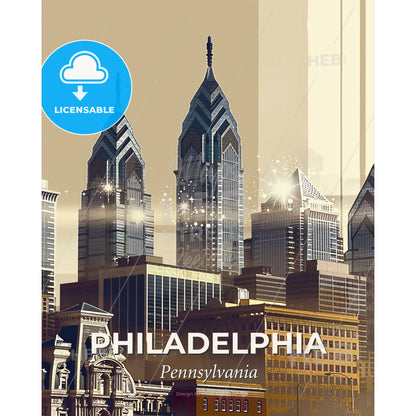 Philadelphia Skyline Art: City Icons and Sparkle - A city skyline with tall buildings