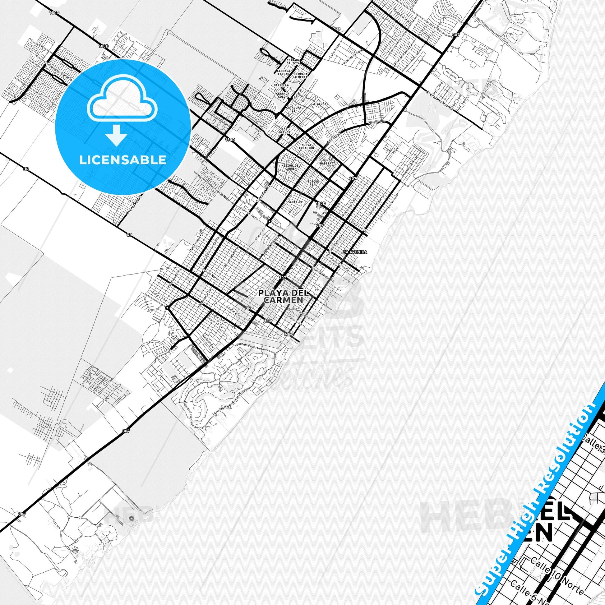 Whether you are a traveler, an urban design enthusiast or a collector of city maps, this Playa del Carmen map is a stylish and functional addition to any project. Download now and discover Playa del Carmen with a modern cartographic touch!