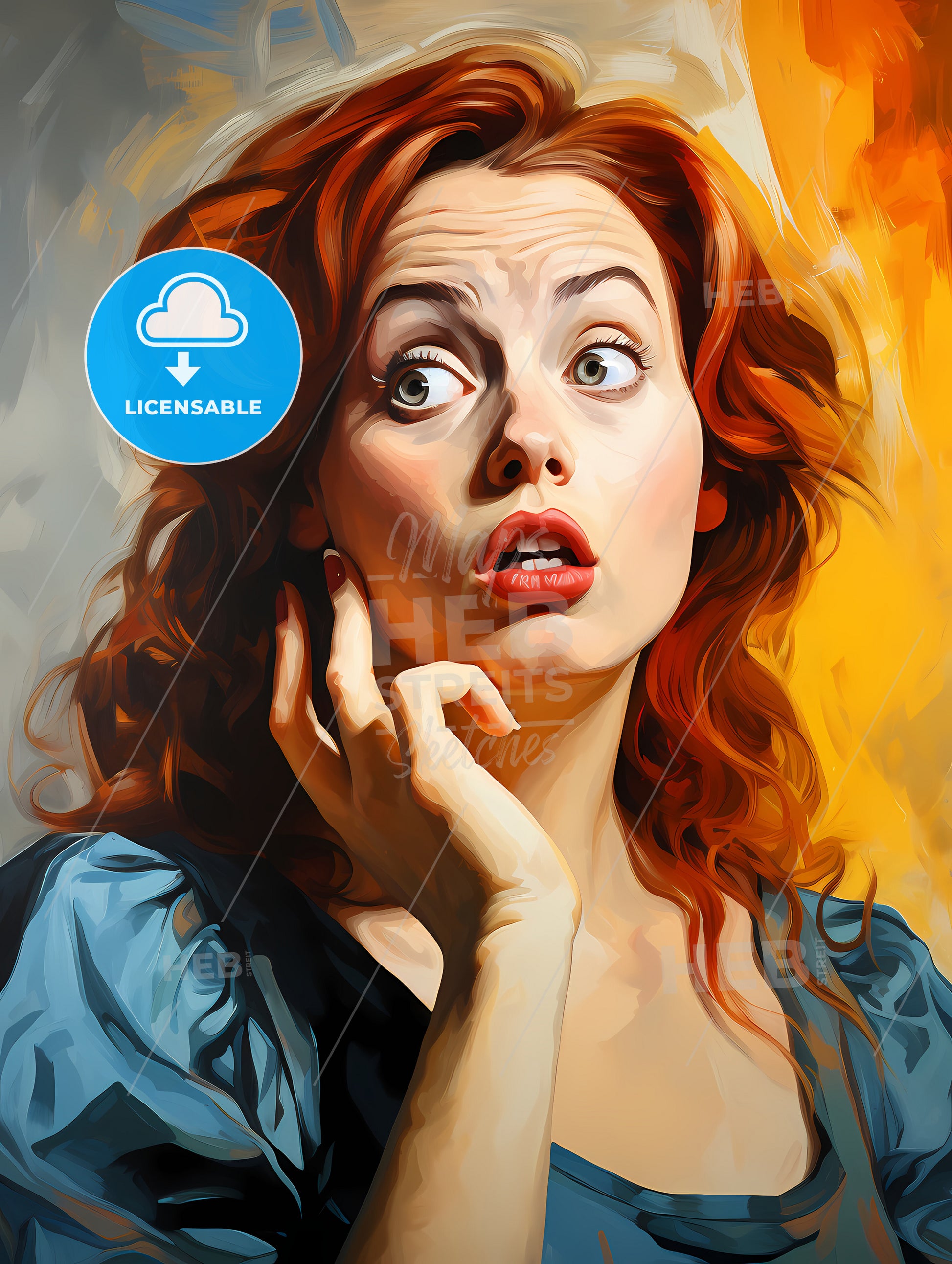 Pop Art Illustration Of Surprised Woman - a woman with red hair and a blue dress