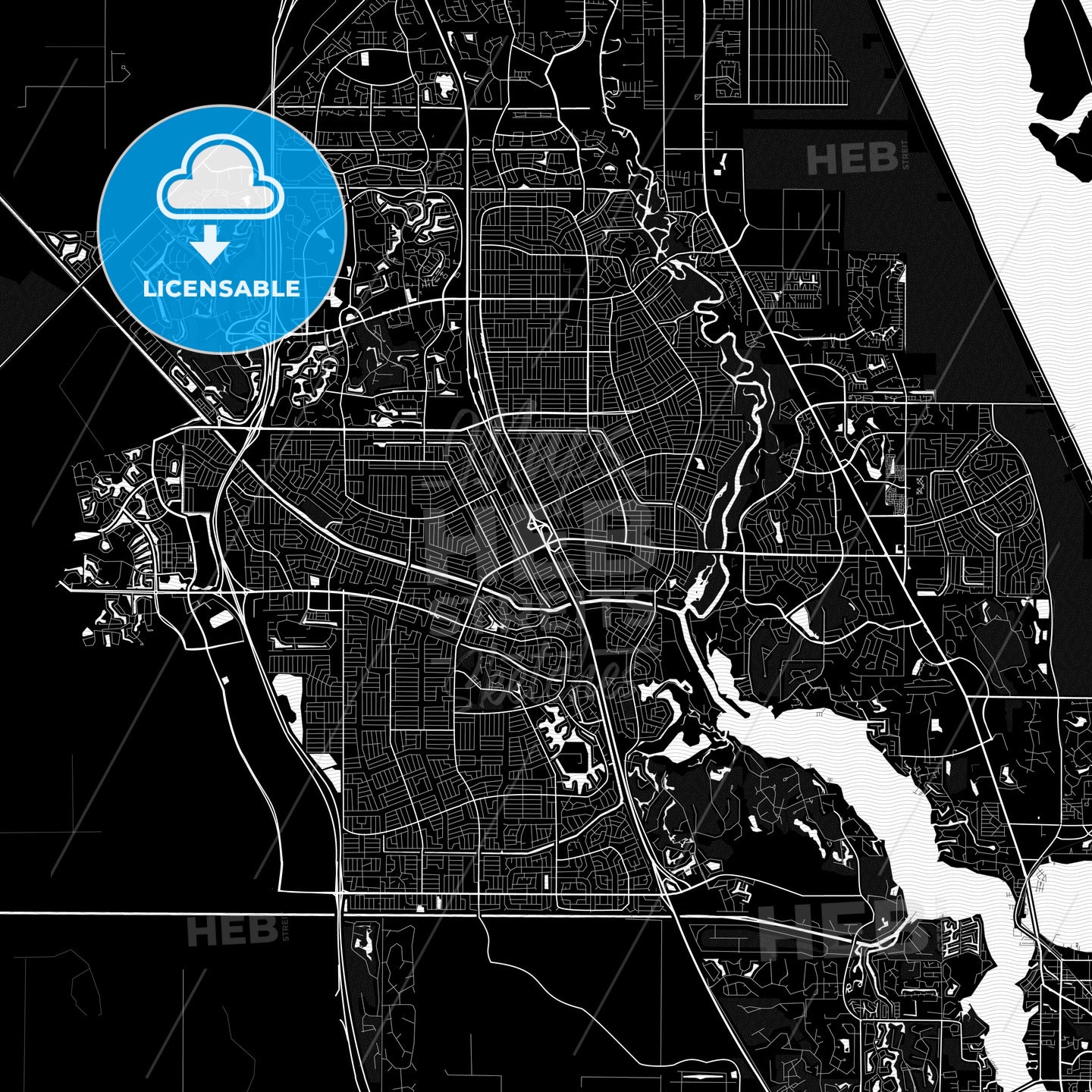 Black and white vector map of Port St. Lucie, Florida, United States with fine structures and patterns for download. This printable map of Port St. Lucie with major and minor roads has been carefully designed for all personal and professional needs. The pure PDF vector version of this map is fully scalable. Depending on our license, you can use this map for websites, marketing background and wall art.