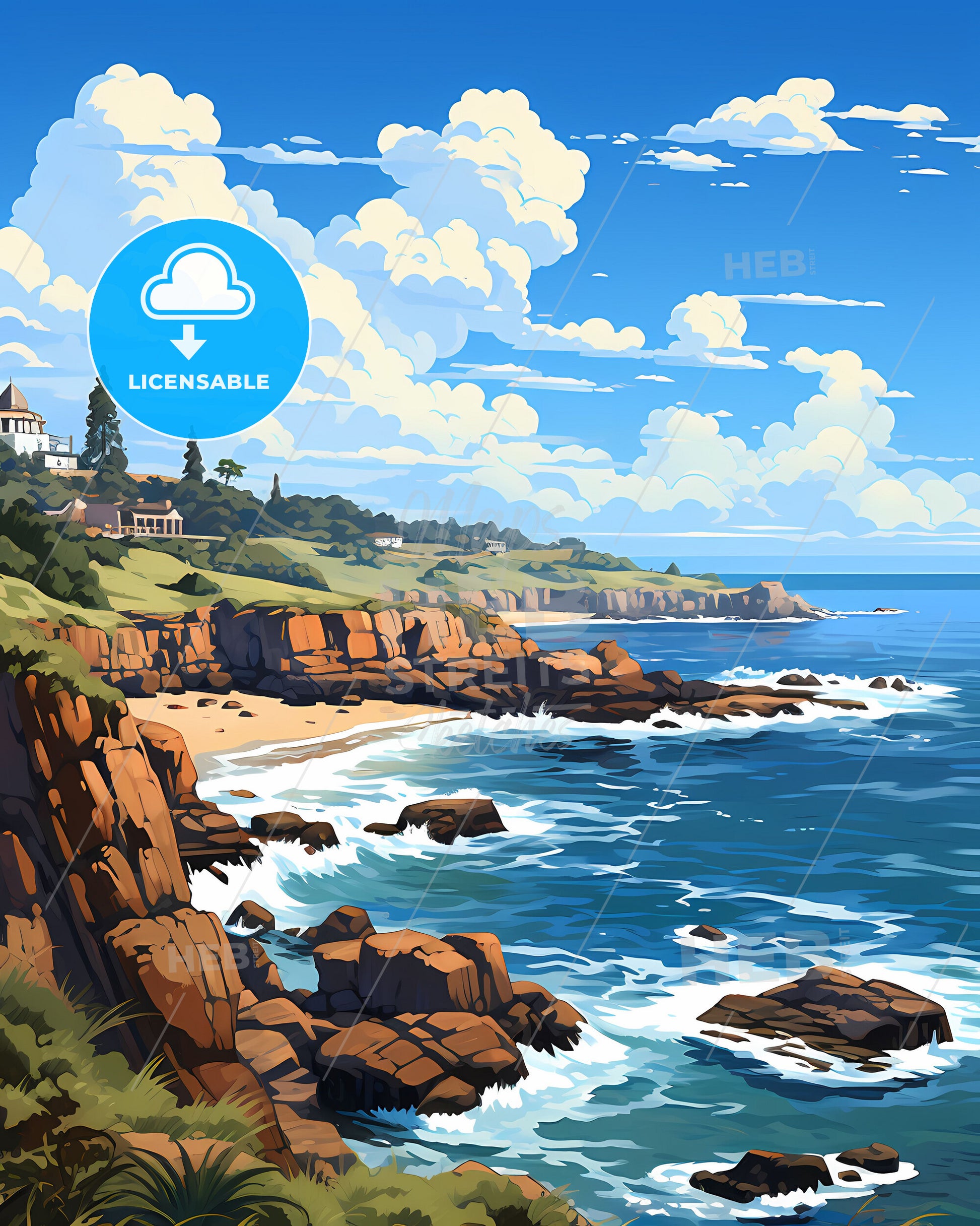 Artistic Beachscape of Port Macquarie Skyline: Vibrant Depiction of Tranquil Australian Coastline
