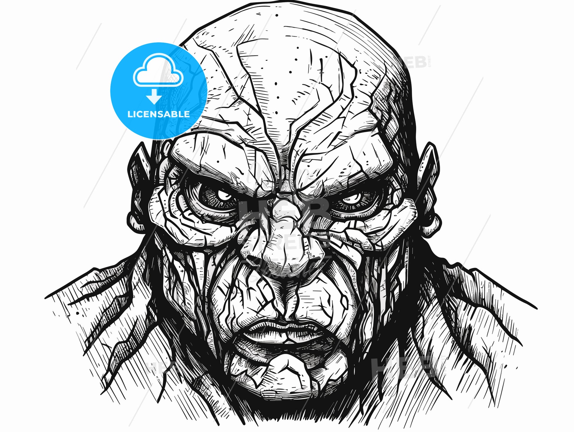 Portrait Of A Golem. - a drawing of a man with cracked skin