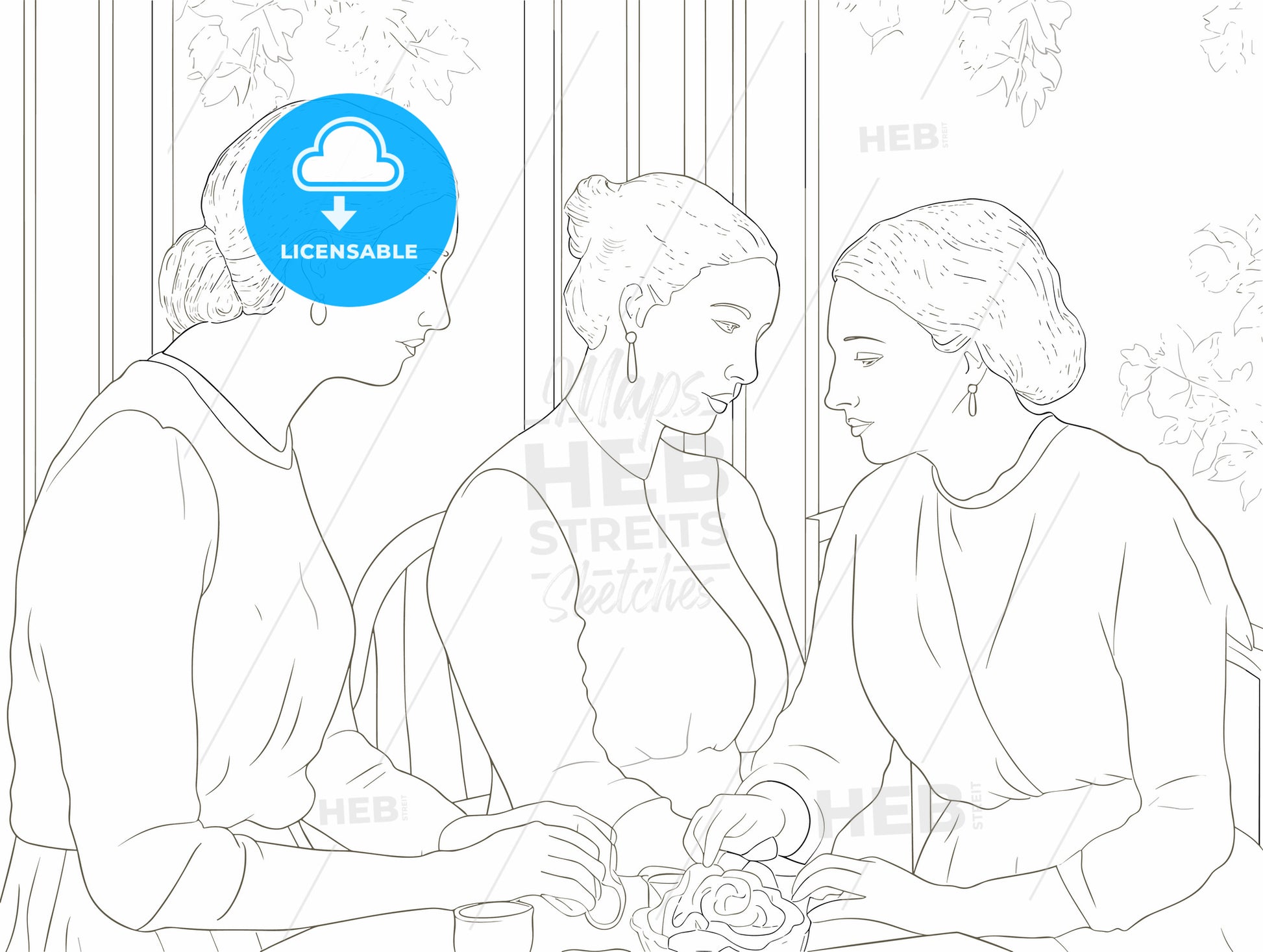 Pretty Young Women In A Cafe - a group of women sitting at a table