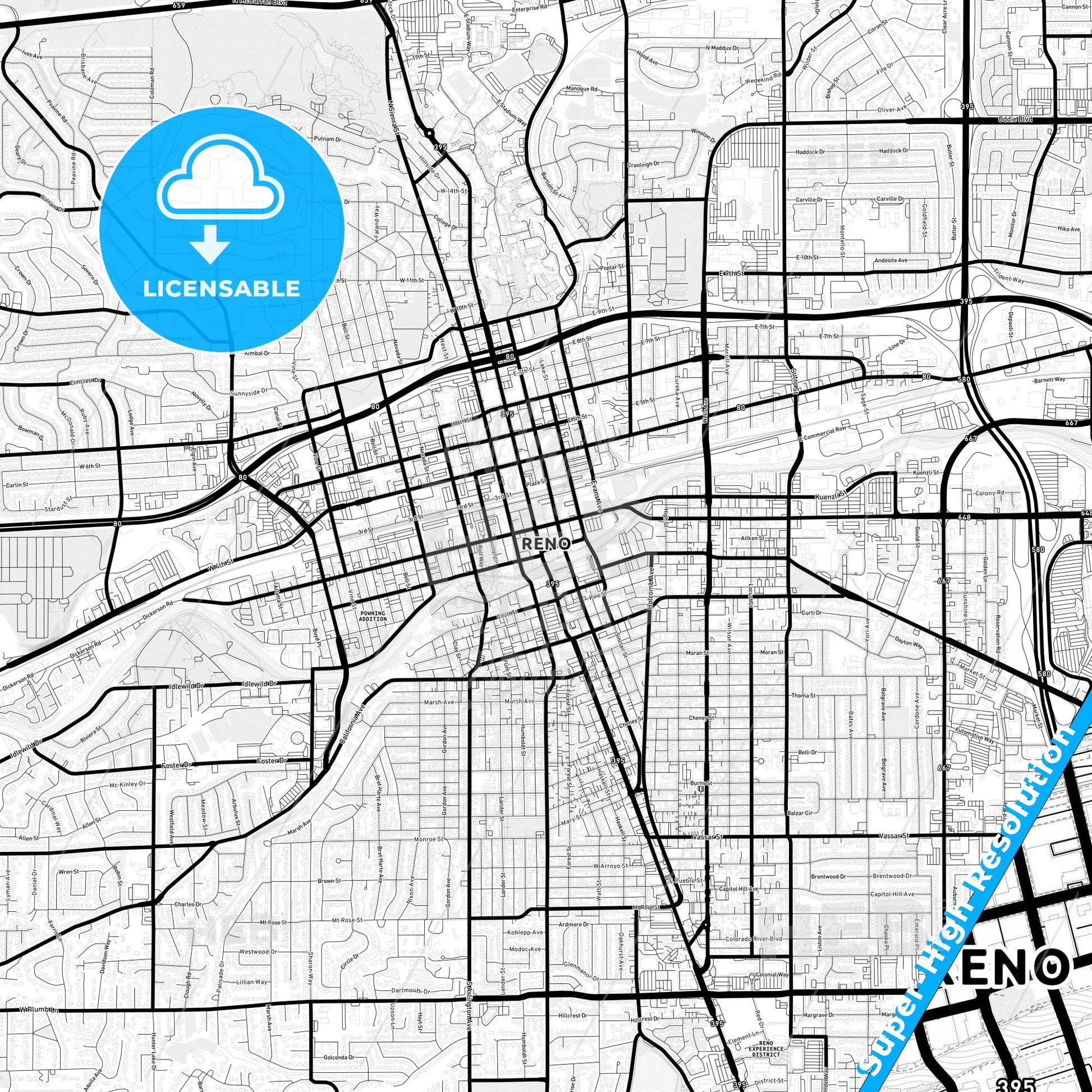 Reno, Nevada, Nevada in high-resolution, minimalist map designed for printed use. This detailed black and white map accurately highlights the street network and urban layout, making it an ideal ready-to-use map for your business.