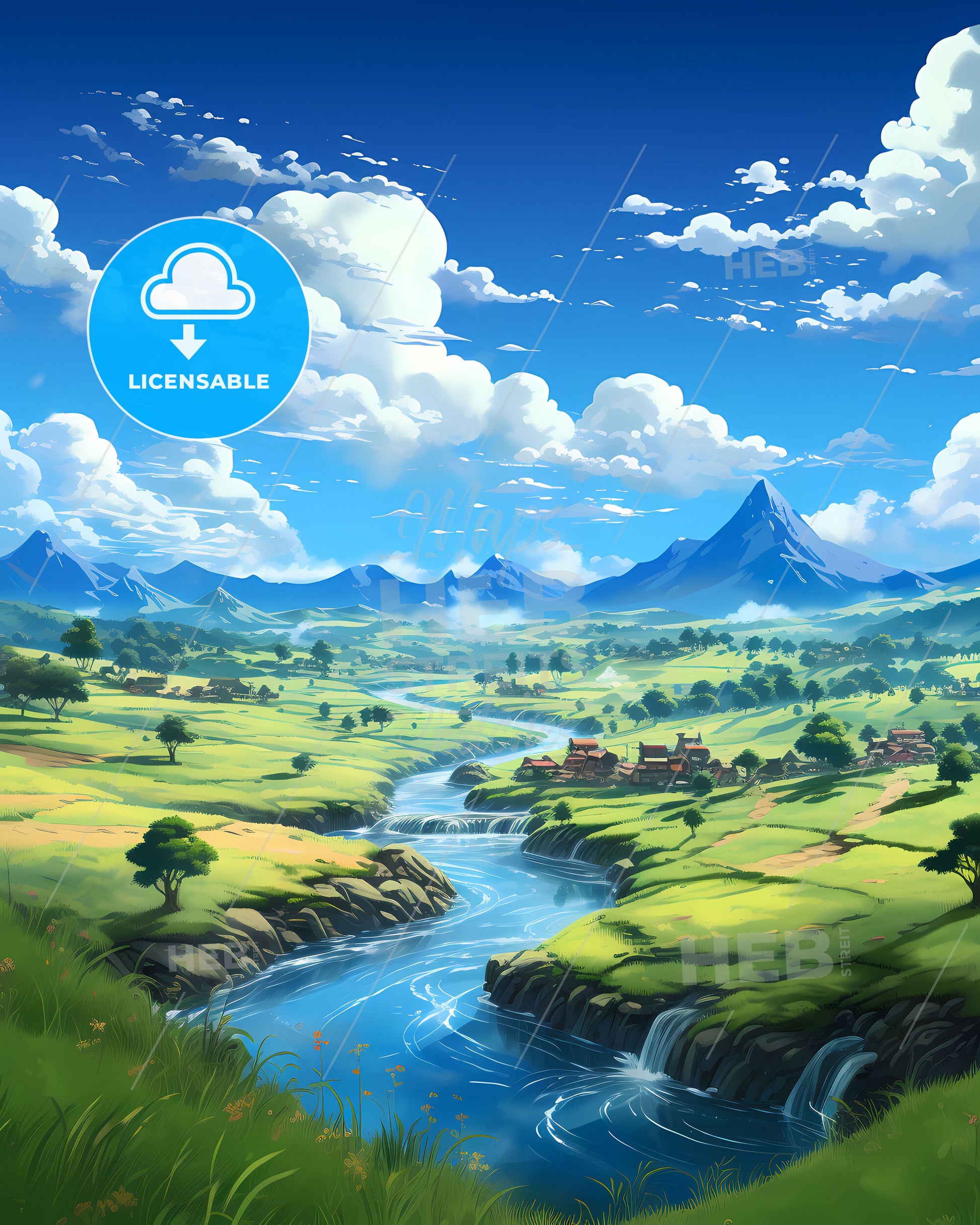 River running through valley in Ribeirao das Neves Brazil Skyline creative painting art