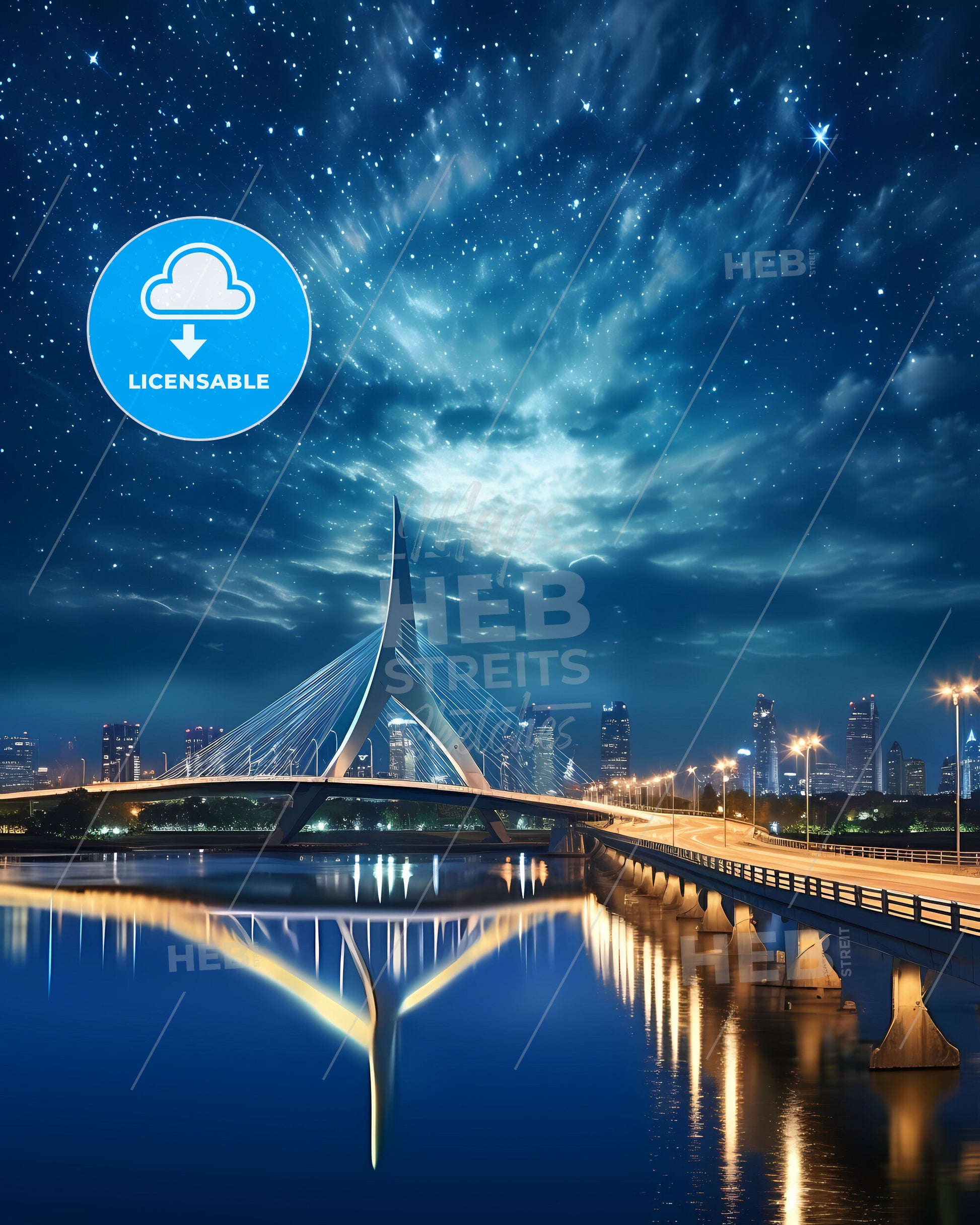 Vibrant Cityscape Painting: Ribeirao das Neves Brazil Skyline Bridge Artwork Urban Art